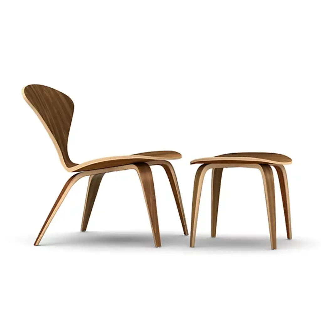 A classic design chiseled to perfection. The Cherner Ottoman by Cherner Chair Company infuses refined elegance to any space in your home. This curvilinear design is designed by Benjamin Cherner who took inspirations from his father's 1958 iconic Norman Cherner. The graceful top that invites you to put your feet up and relax is molded from plywood shell. It is offset with a laminated wood base with a curvy profile. Whether you place it on its own or in combination with the Cherner lounge chair, this ottoman adds a little extra comfort to your living space.