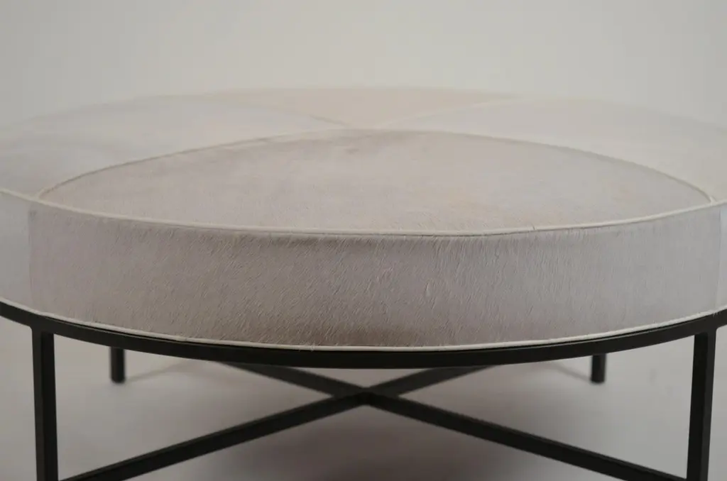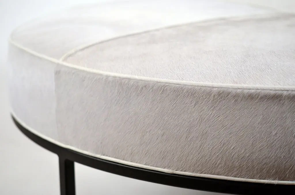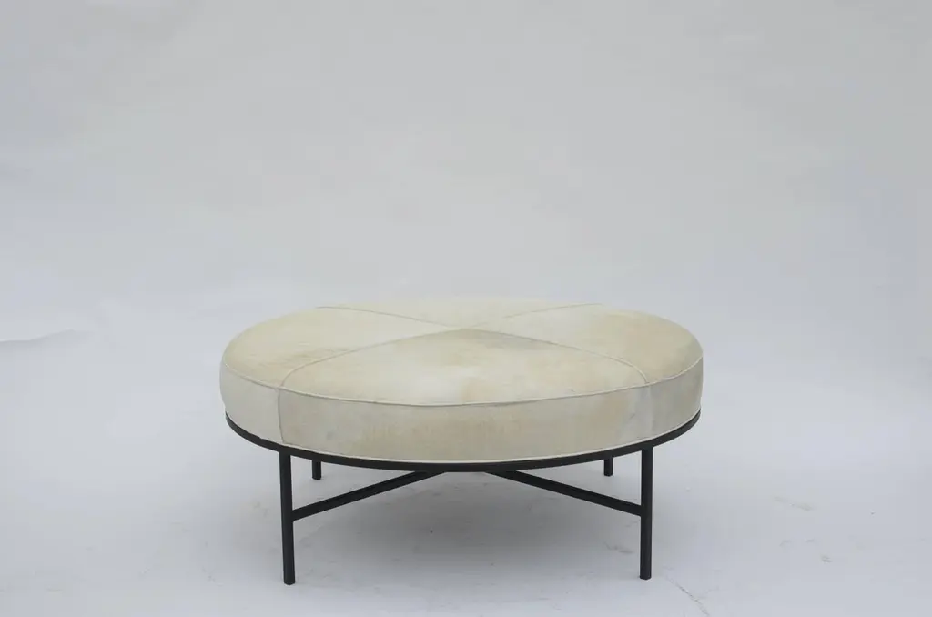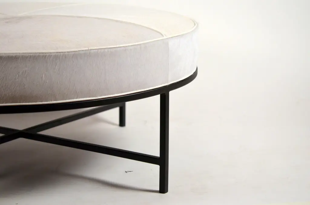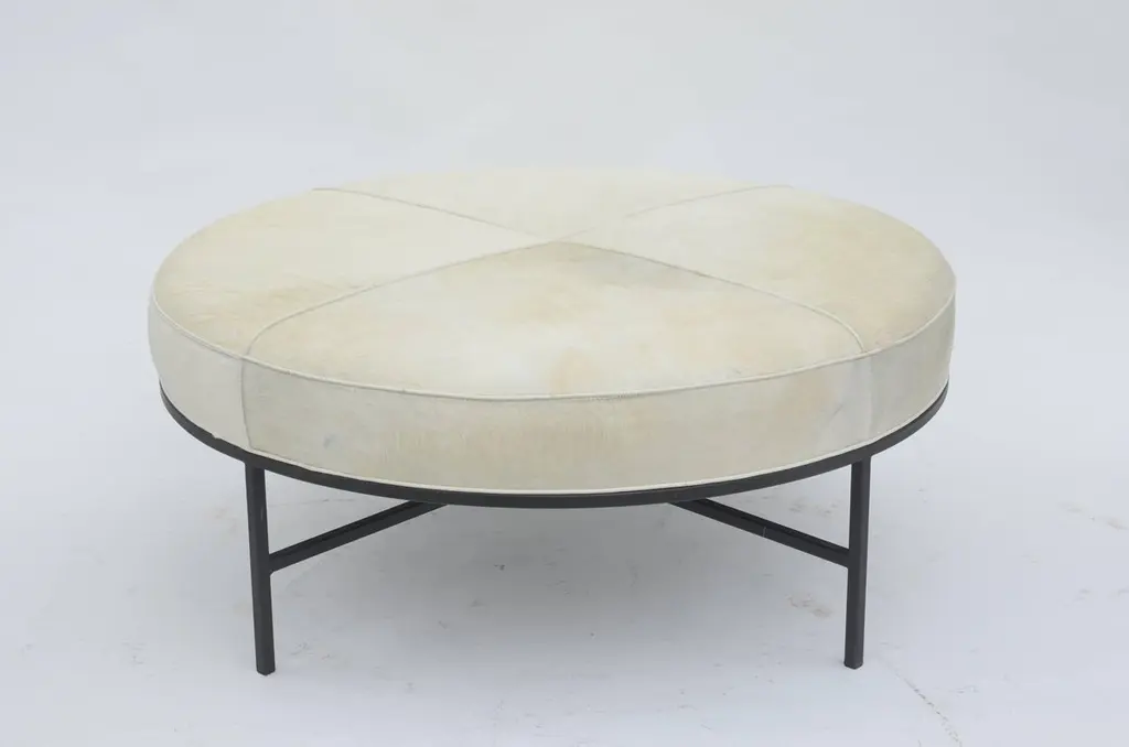 Chic White Hide And Blackened Steel 'Tambour' Ottoman By Design Frères