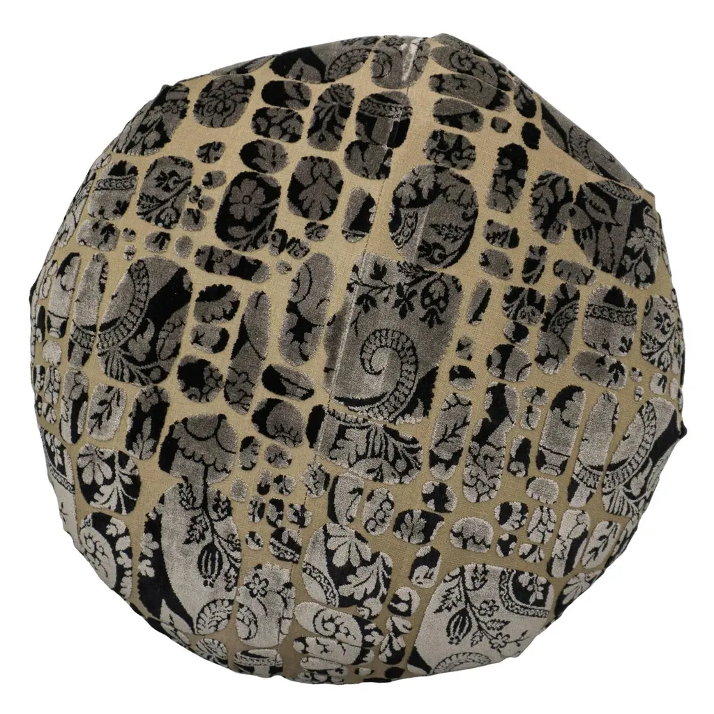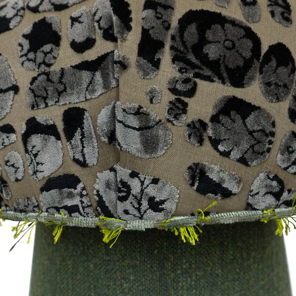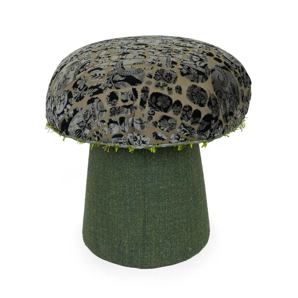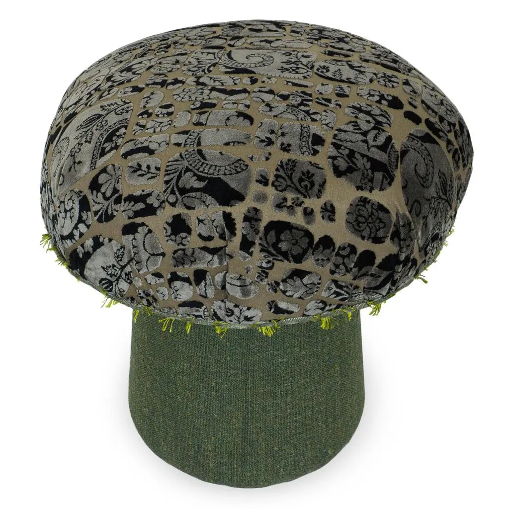 Circular Cut Velvet Green Linen Mushroom Ottoman