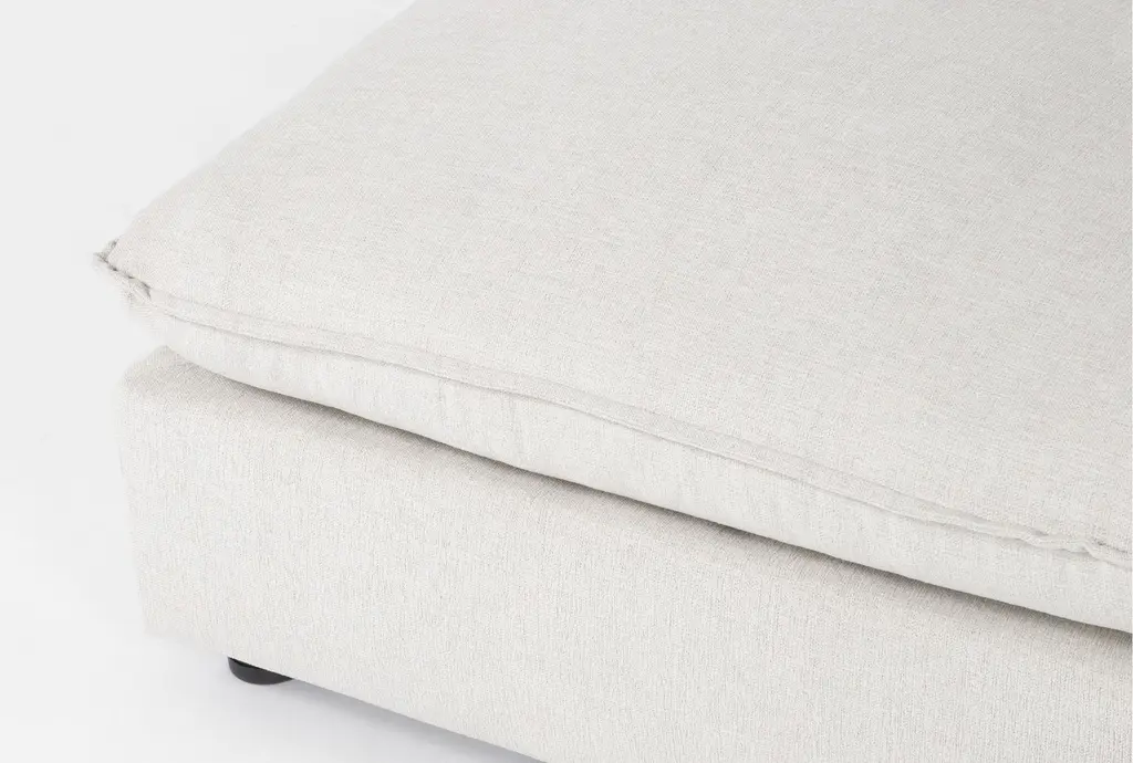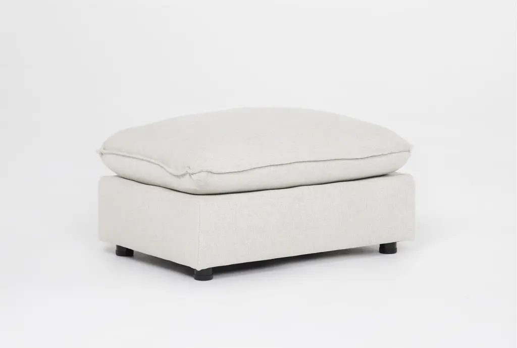 The Cirrus Cloud Beige 37" Ottoman is a versatile addition to any living room, providing comfort and style. Its rustic design and neutral beige color make it a perfect fit for various decor themes. Made in the USA, this ottoman is crafted from high performance fabric ensuring durability and comfort.