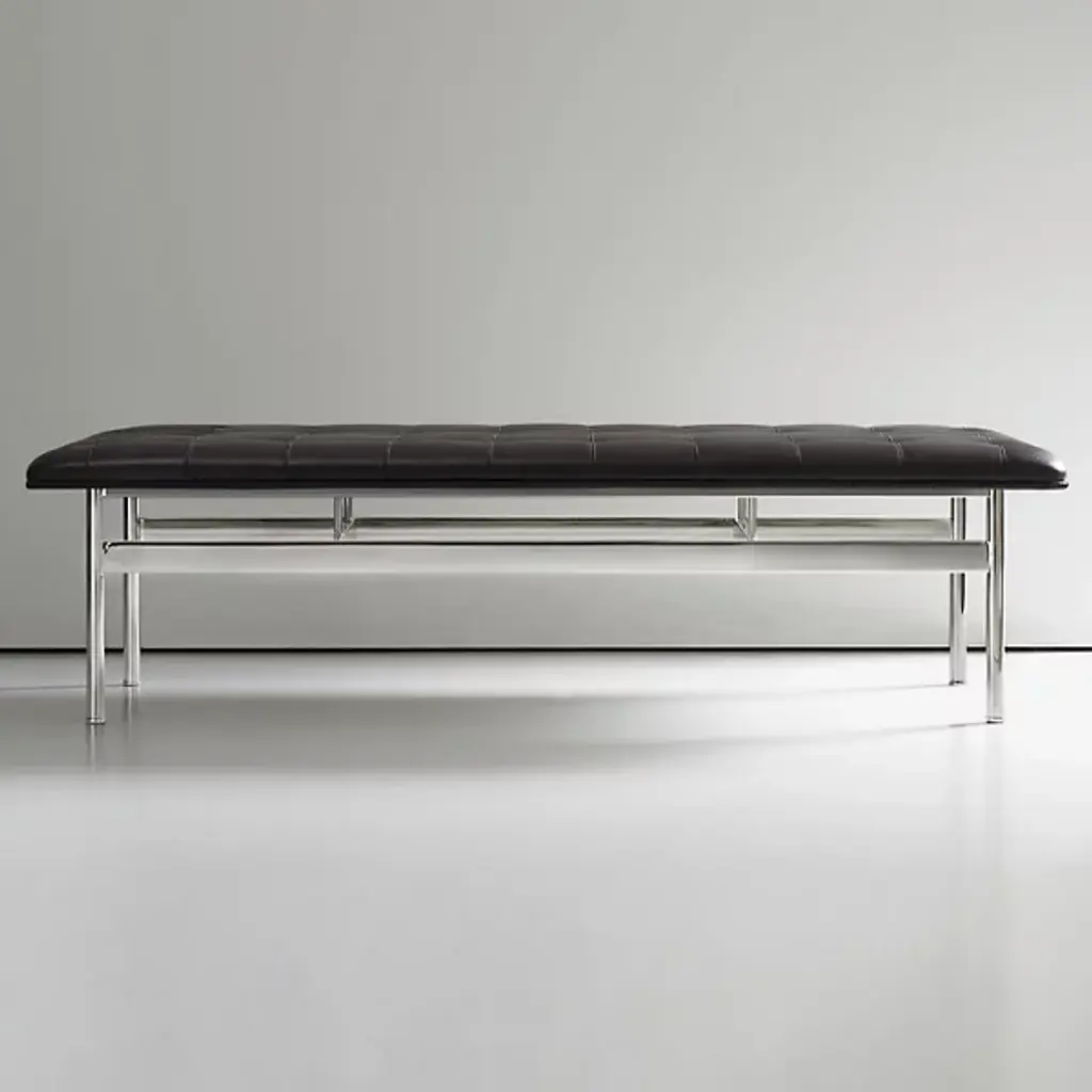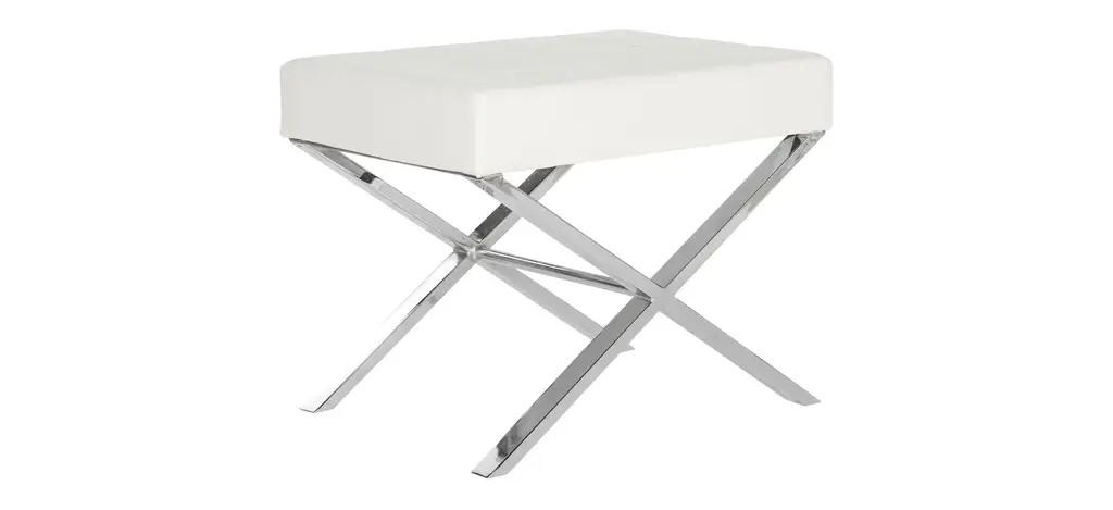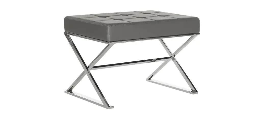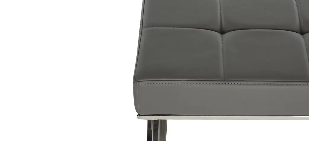 Inspired by the design classics from Bauhaus workshops, this Clara Ottoman is modern luxury at its finest. Its combination of cool grey PU leather and polished stainless steel make it effortlessly chic, ideal for extra seating or an impromptu cocktail tray.