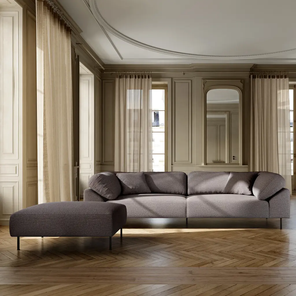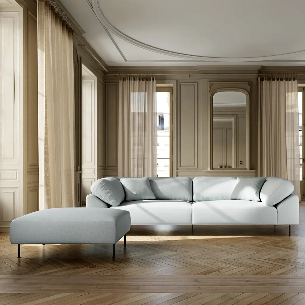 Cologne-based German designer Meike Harde adds a generously proportioned ottoman to complement her Collar range. Deeply cushioned, it matches the voluminous proportions of the collection’s sofas and is available in the same wide choice of fabric selections. With its minimalist metal legs as a counterpoint, it melds expansive comfort with a contemporary attitude.