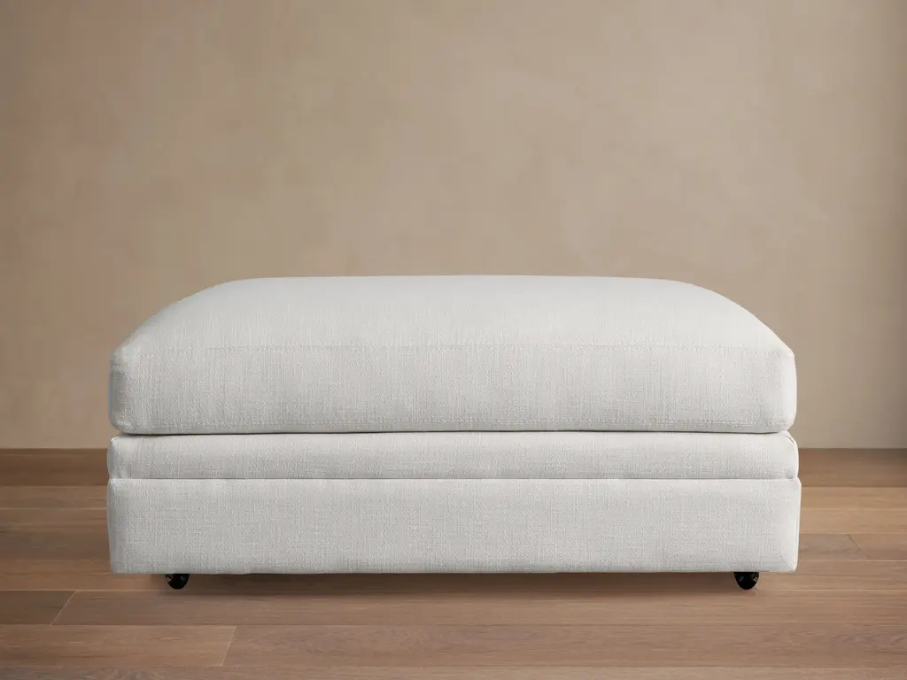 By itself, for extra seating, or paired with a classic Conor chair, this traditional ottoman makes a statement in any space where comfort is required. Available in your choice of fabrics and leathers.