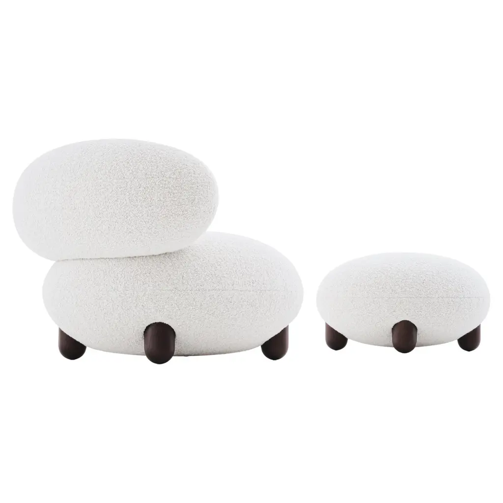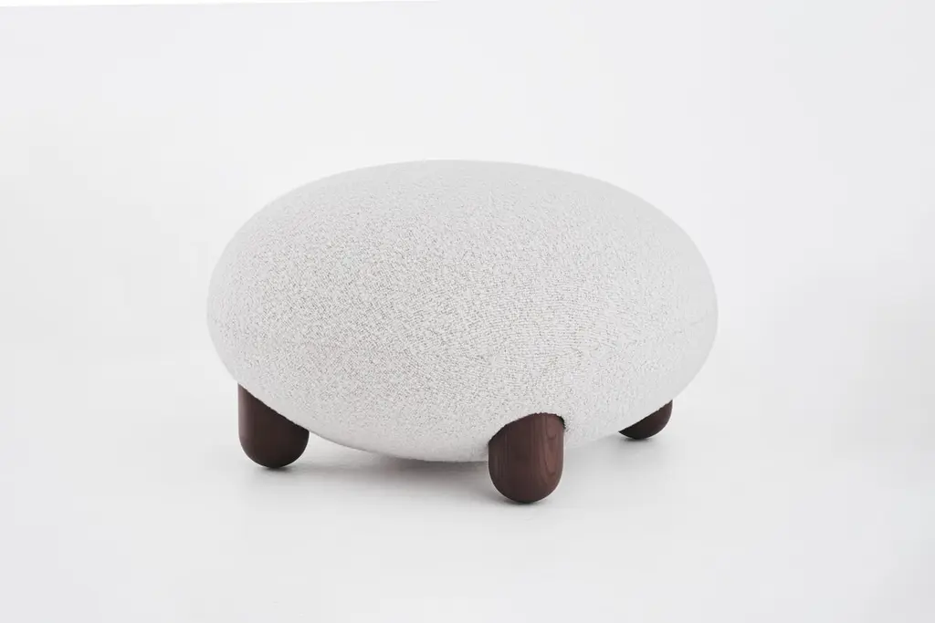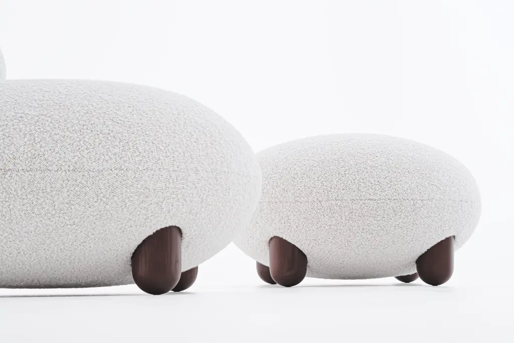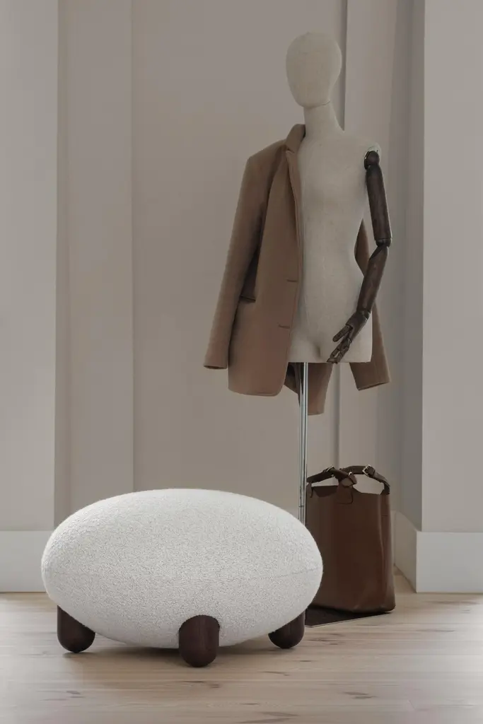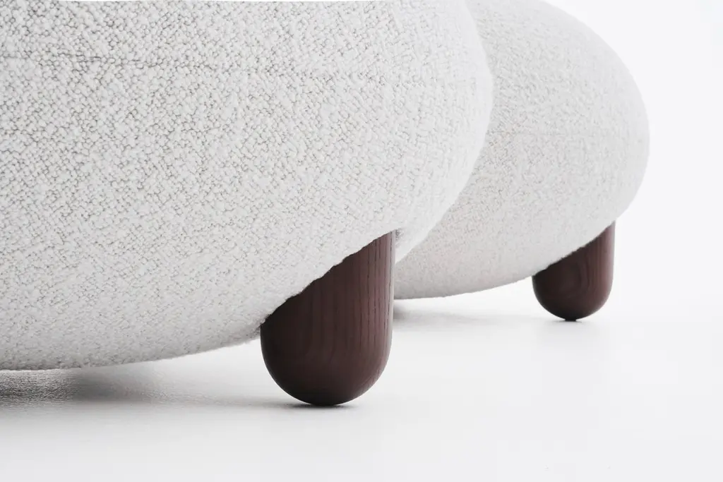 Ottoman 'Flock' by NOOMDesigner: Kateryna SokolovaDimensions: H 72 cm, W 90 cm, D 99 cm seat H 44 cmMaterials: wood, bouclé (karakorum)Model shown: Dedar Karakorum 007, brown legsThe “Flock” furniture collection draws on the idea that home is a place of comfort, sanctuary, and gathering and should be filled with personalized, character-rich, and eye-catching statement objects.Soft, voluptuous, sensual forms, natural materials, and pleasant-to-the-touch surfaces reflect a desire for warmth and cocooning."Subtly curved artistic silhouettes, soft fabric, and wooden legs define the furniture's relaxation and cuteness. We wanted to create furniture that would become part of the family, intimate and beloved," - said Kateryna Sokolova, designer of the Flock collection.The name "Flock," which means "to move or come together," refers to the collection's role as a peaceful oasis and the main meeting space within the home.The NOOM’s newest collections blend soul, bold forms, fine detailing, intriguing materials, and meticulous production. I think, a great design undoubtedly combines three essential ingredients: simplicity, functionality, and passion.
