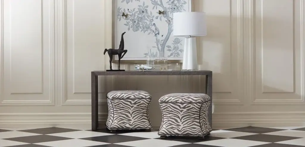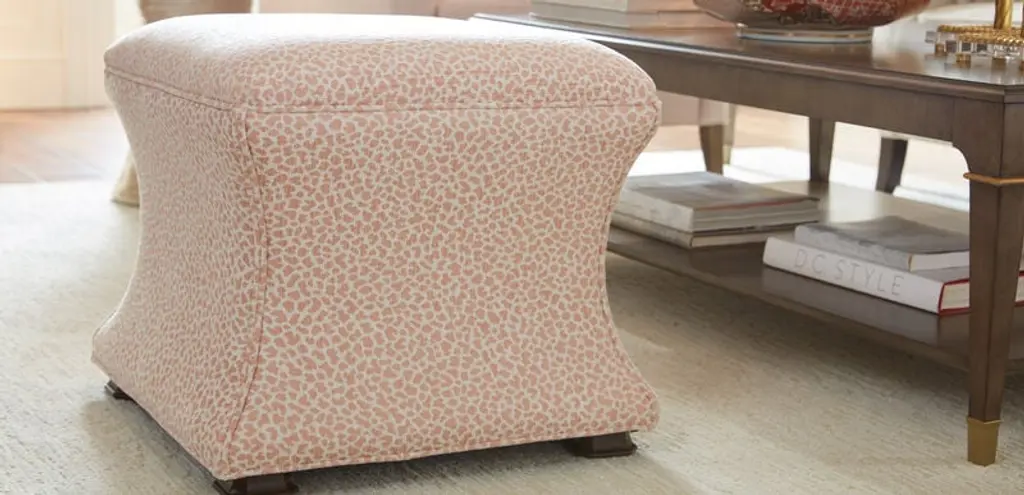 It's feet first with the Corbin, a compact ottoman with an hourglass-inspired silhouette. Ideal as a traditional ottoman, extra seating, or in pairs at the foot of the bed. It's customizable, too--in your choice of hundreds of fabrics in a variety of colors and patterns. It is also available in leather.