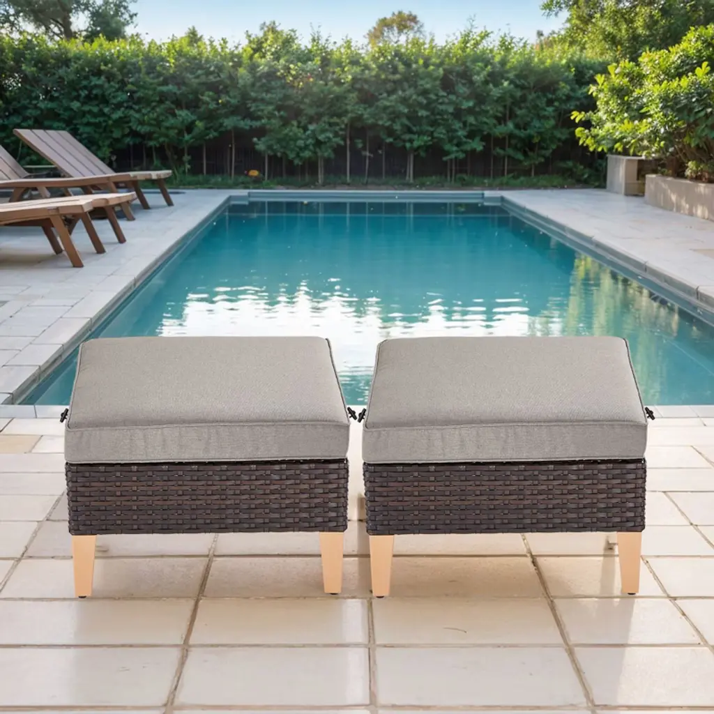 Courtyard Casual Bridgeport Ii Ottoman Stained Eucalyptus Wood Kd Sunbrella Fabric