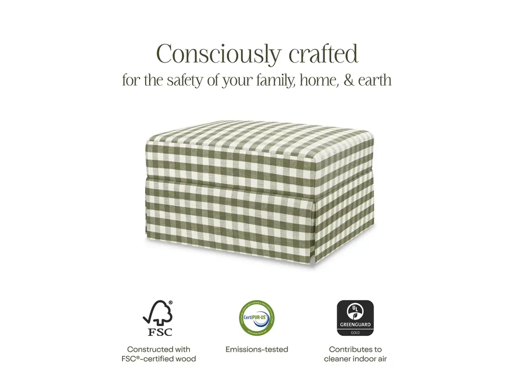 The Crawford Ottoman offers a modern take on traditional slipcover style and brings nursery comfort to a new level. It's the perfect pair to our Crawford Glider, which features a plush pillowback design, added lumbar pillow, and wide seat. The glider and ottoman work together to create a back-and-forth gliding motion that helps you rock your baby to sleep with ease.