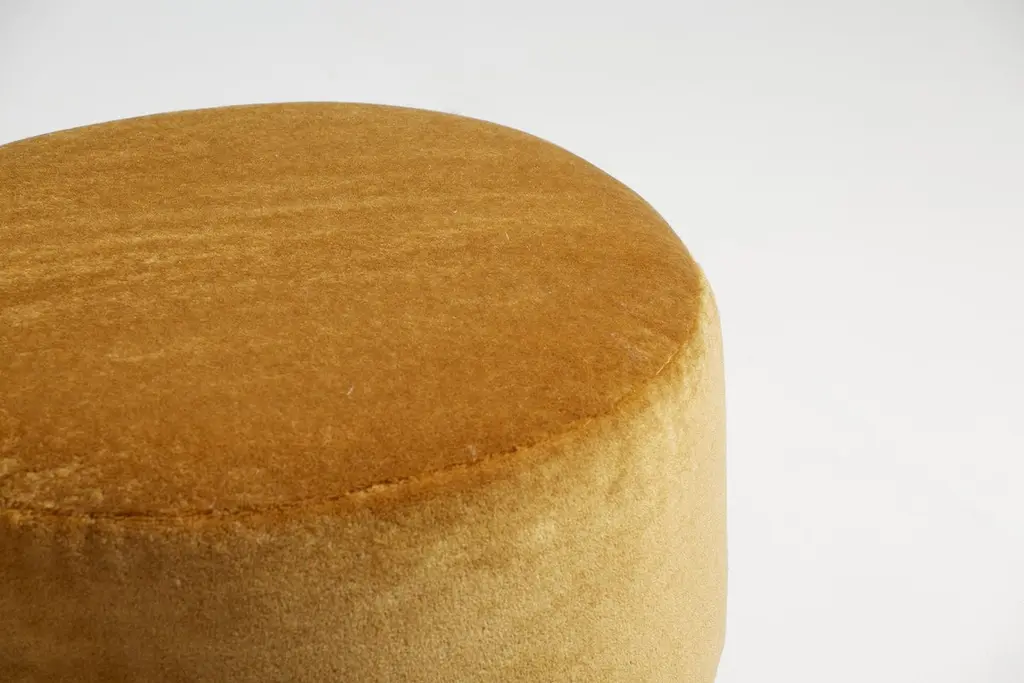 Dagmar - Luupo Round OttomanCustom-made ottoman developed & produced at our workshops in Sweden using the highest quality materials. This examples are upholstered in a mustard mohair velvet by Pierre Frey with fumed oak ball feet. This ottoman is available to order in a range of different materials and with a choice of 3 leg finishes. This ottoman is also available in a 45cm tall version.Measures: D 55 cm / H 40 cm.