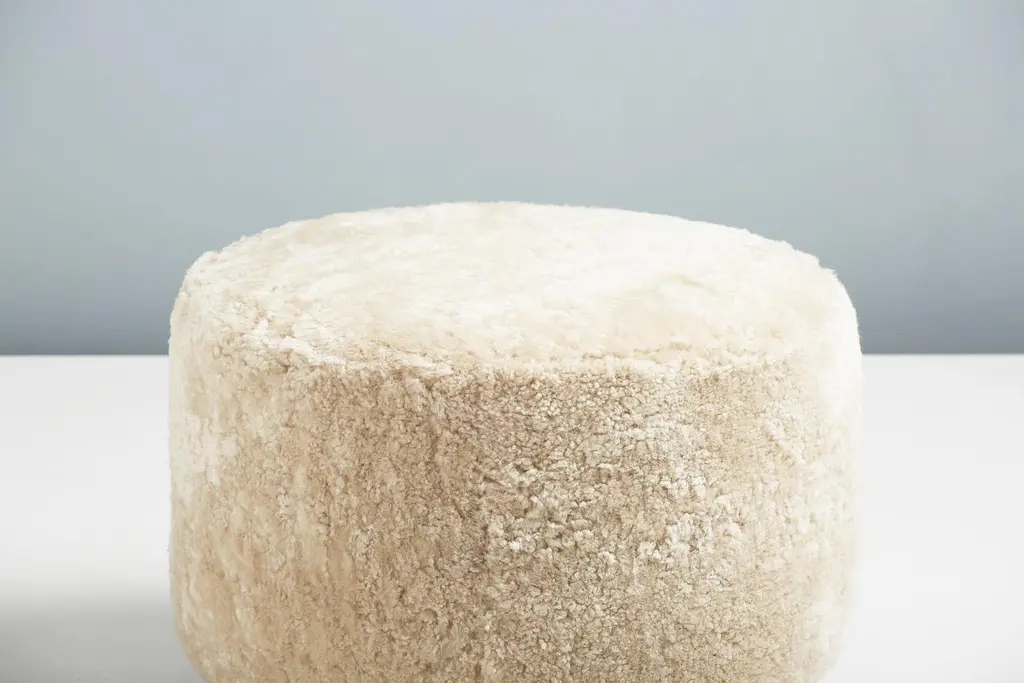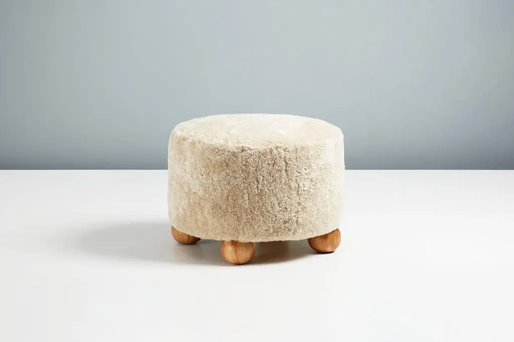 Custom Made Round Sheepskin Ottoman With Oak Ball Feet