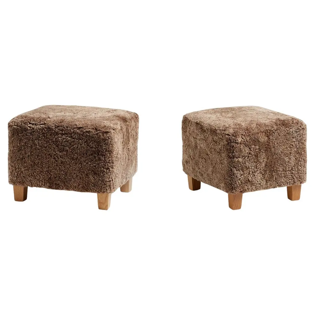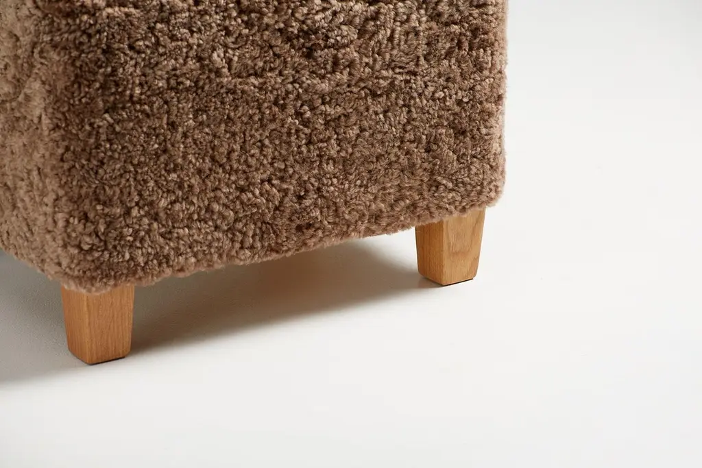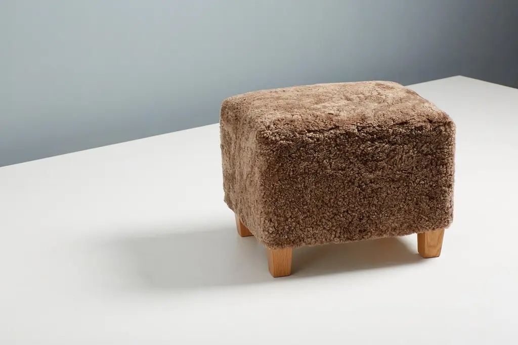 Dagmar Design - Karu OttomanCustom-made ottoman developed & produced at our workshops in London using the highest quality materials. This example is upholstered in Sahara sheepskin with feet in oiled oak. This ottoman is available to order in a range of different materials and with a choice of 3 leg finishes and perfectly compliments our Karu lounge chair. Please contact us for more information. A range of other sheepskin, fabric and wood finishes are available by request. Measures: W 56cm / D 48cm / H 40cm.