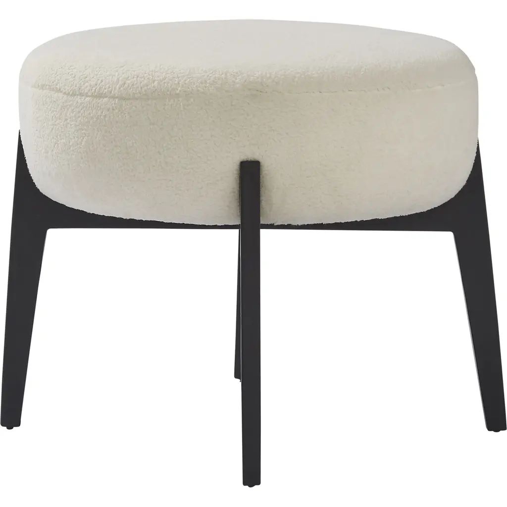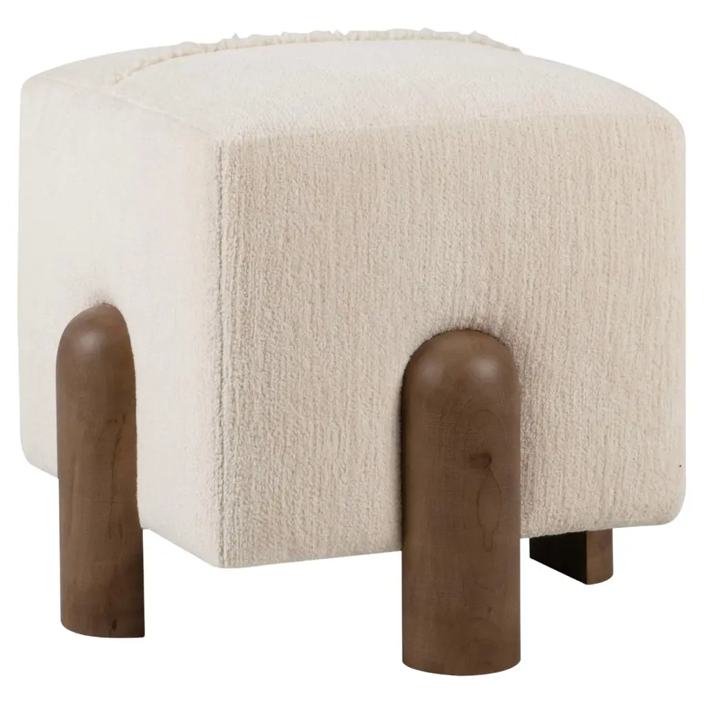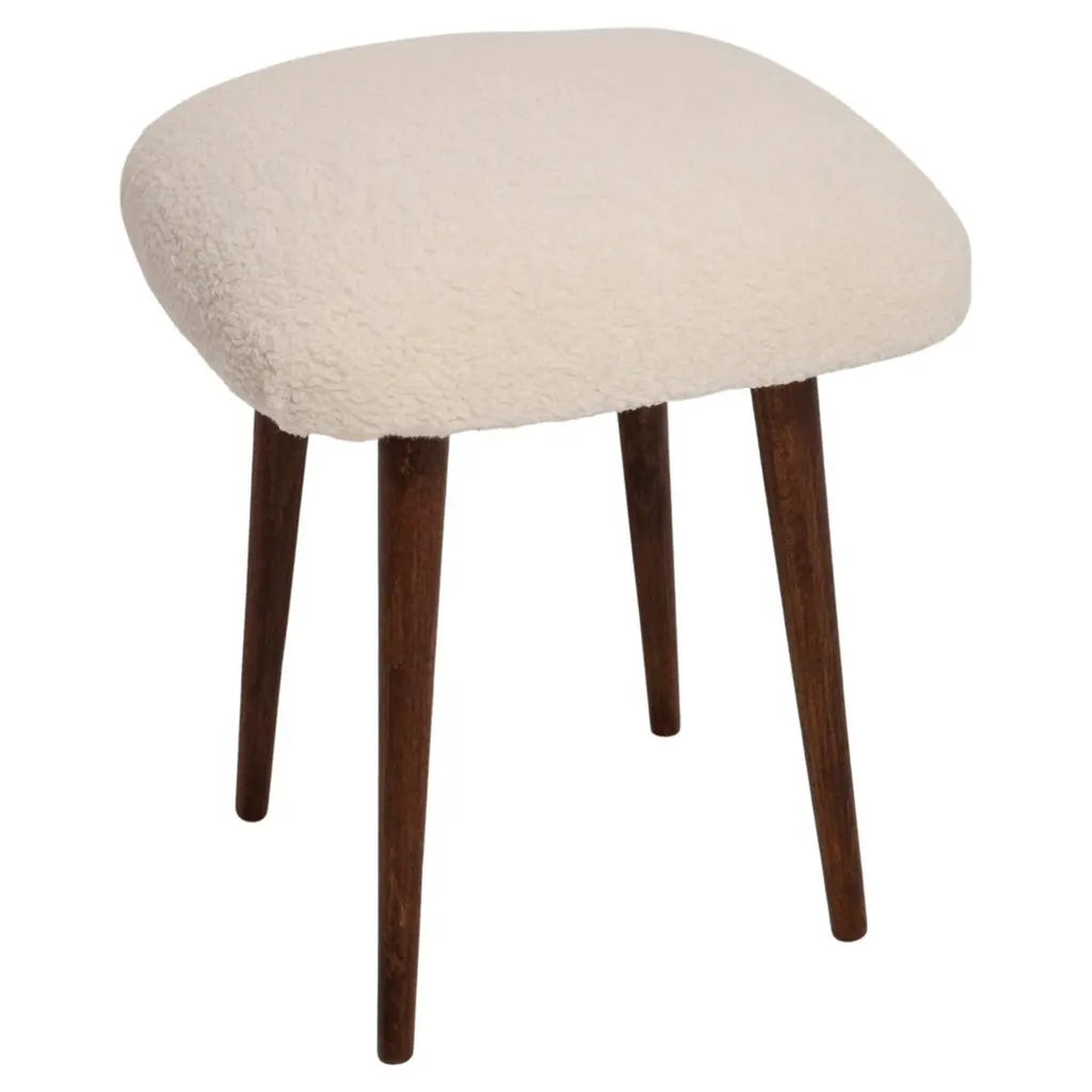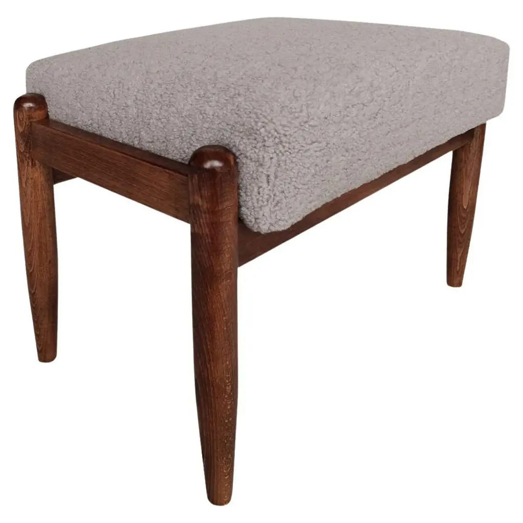 Custom Made Walnut And Boucle Round Ottoman