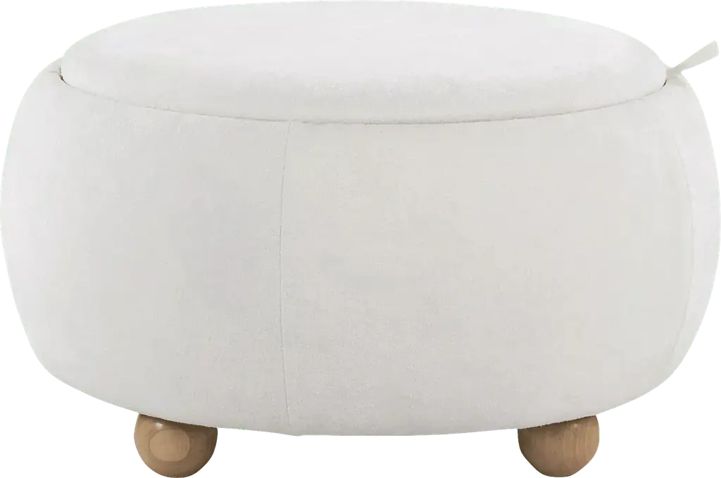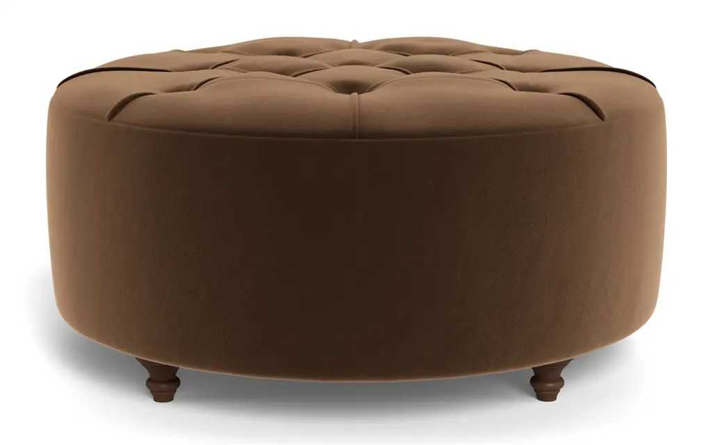 Custom Round Mohair Velvet Ottoman With Oak Feet