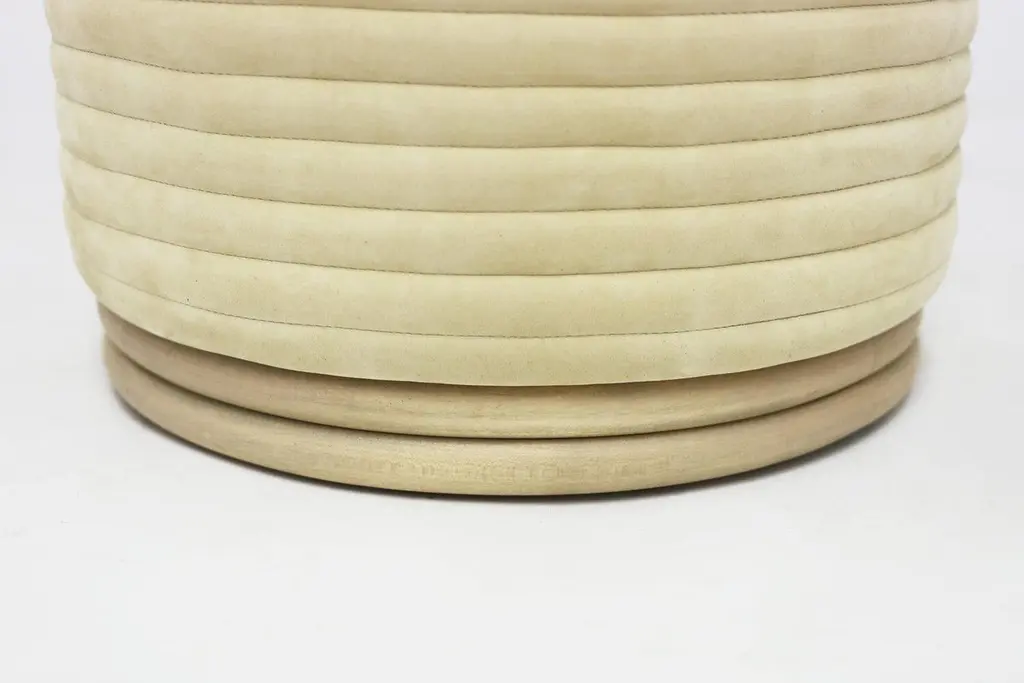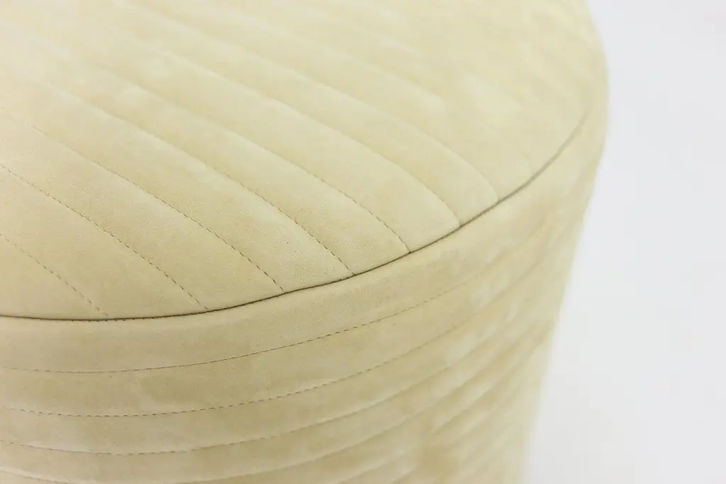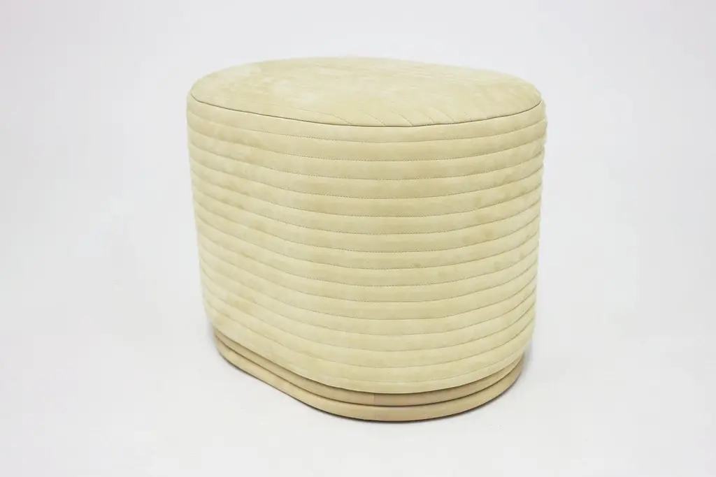 Custom Upholstered Channeled Ottoman On Maple Wood Base With Hand Stitching