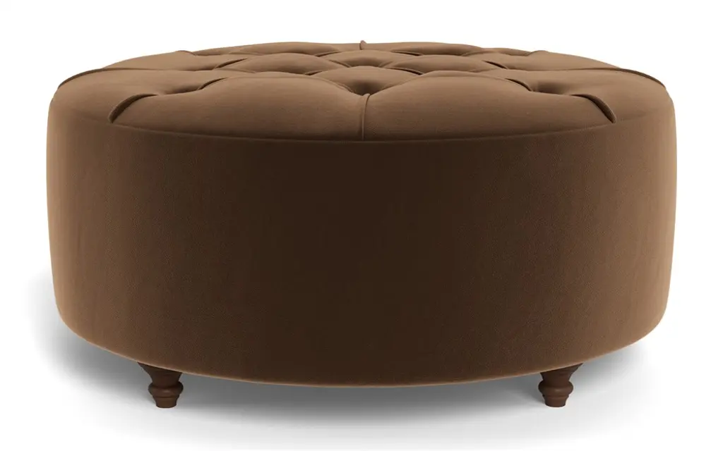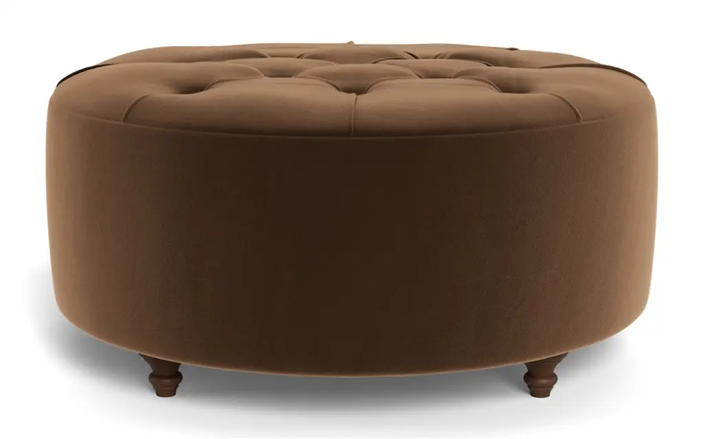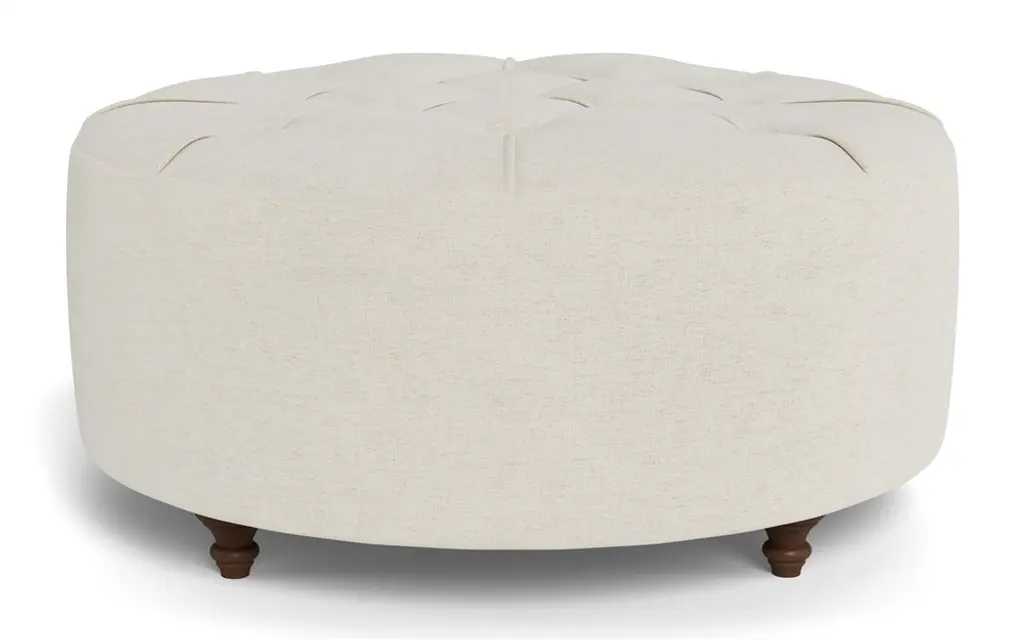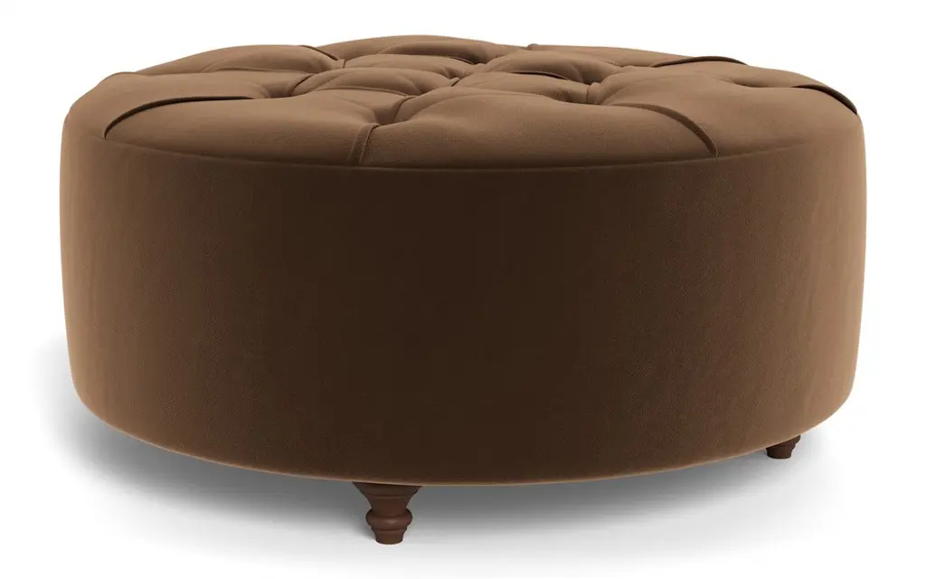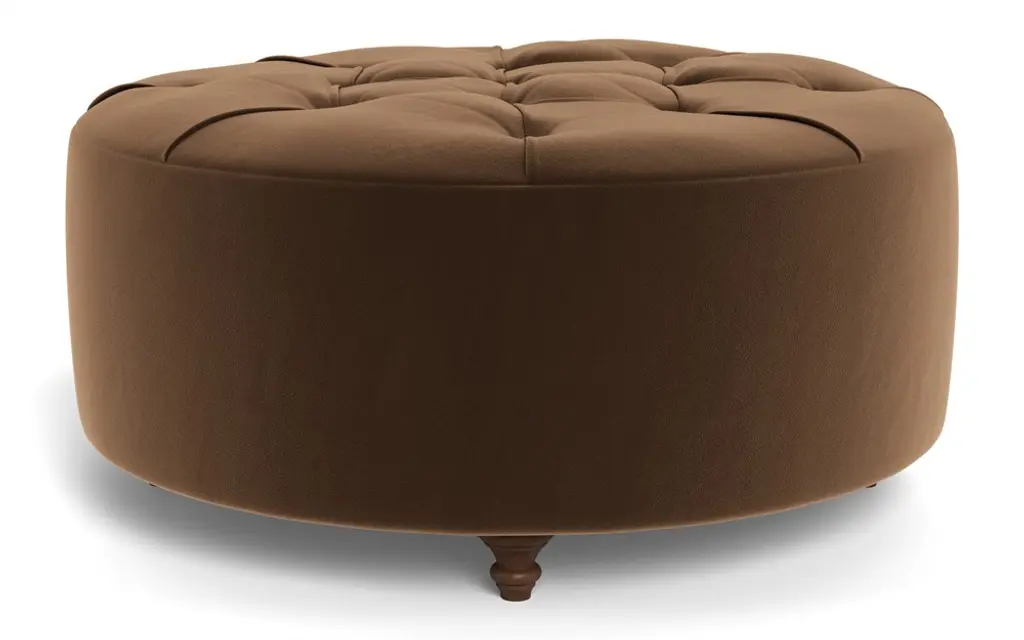 Our 36” Davina round ottoman brings effortless style and functionality to any living space. This classic silhouette boasts a button-tufted top and turned wood legs, while its comfortable cushion offers a firm yet cozy sit. Utilize Davina as a coffee table, as extra seating in the living room, or as a comfy footrest at the end of your sofa.