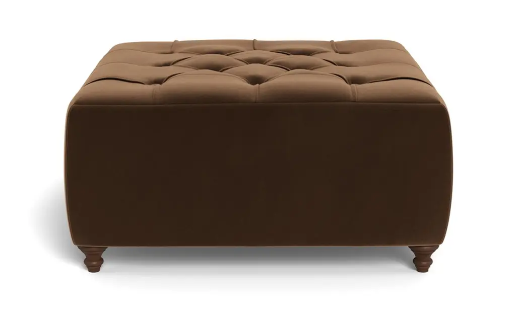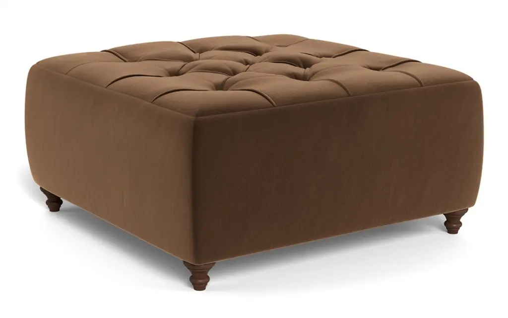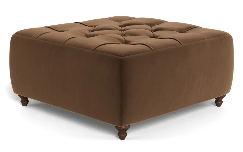 Our 36” Davina square ottoman brings effortless style and functionality to any living space. This classic silhouette boasts a button-tufted top and turned wood legs, while its comfortable cushion offers a firm yet cozy sit. Utilize Davina as a coffee table, as extra seating in the living room, or as a comfy footrest at the end of your sofa.