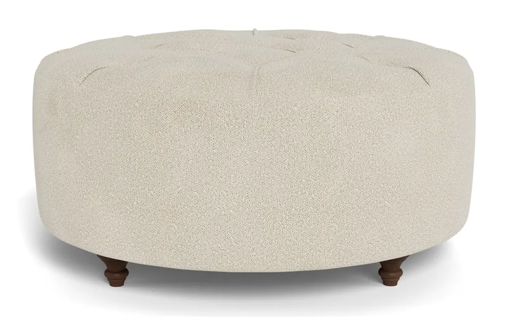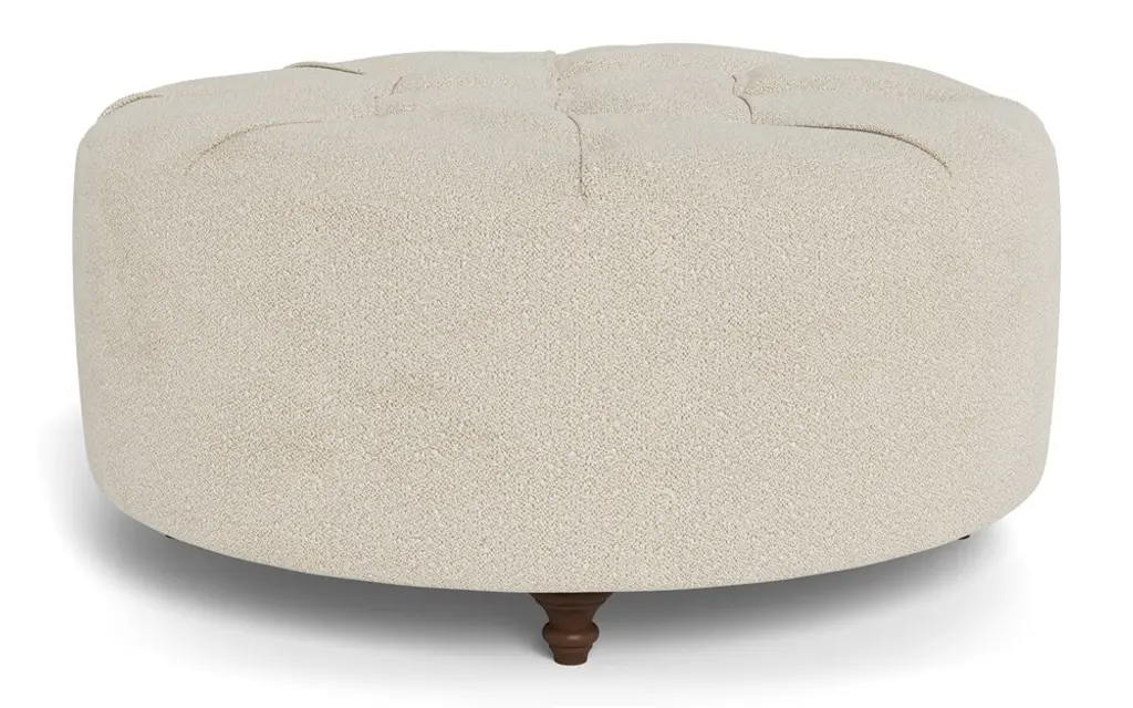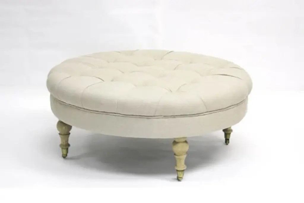 Our 42” Davina round ottoman brings effortless style and functionality to any living space. This classic silhouette boasts a button-tufted top and turned wood legs, while its comfortable cushion offers a firm yet cozy sit. Utilize Davina as a coffee table, as extra seating in the living room, or as a comfy footrest at the end of your sofa.