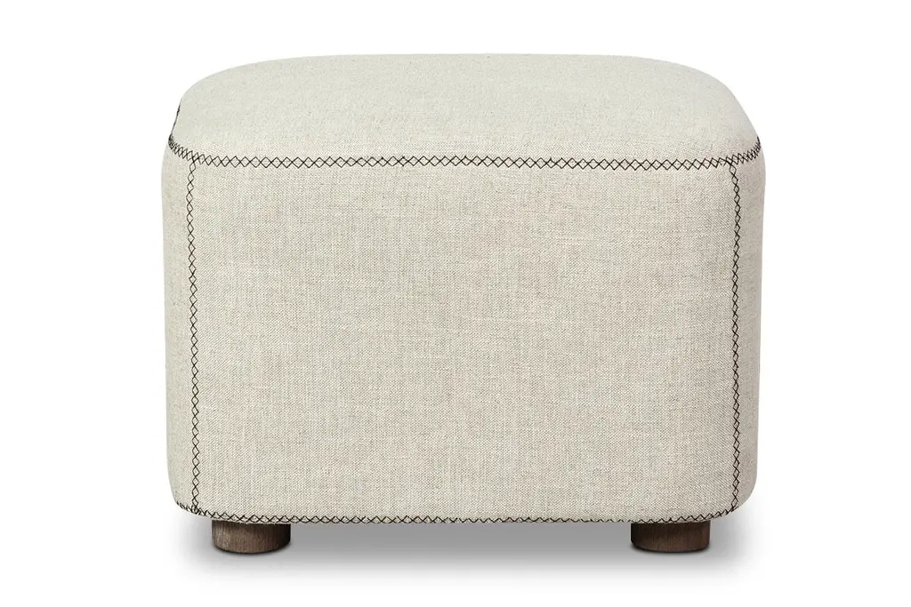 With its cube silhouette, off-white linen-blend upholstery, and simple cross-stitch seam detailing, the Decker Ottoman embraces minimalism to give you a handsome, functional complement to your living space. Its four wooden legs come with non-marking glides, making it a versatile addition to any room. Use it as a place to kick your feet up, an extra seat, or a spot to rest your book!