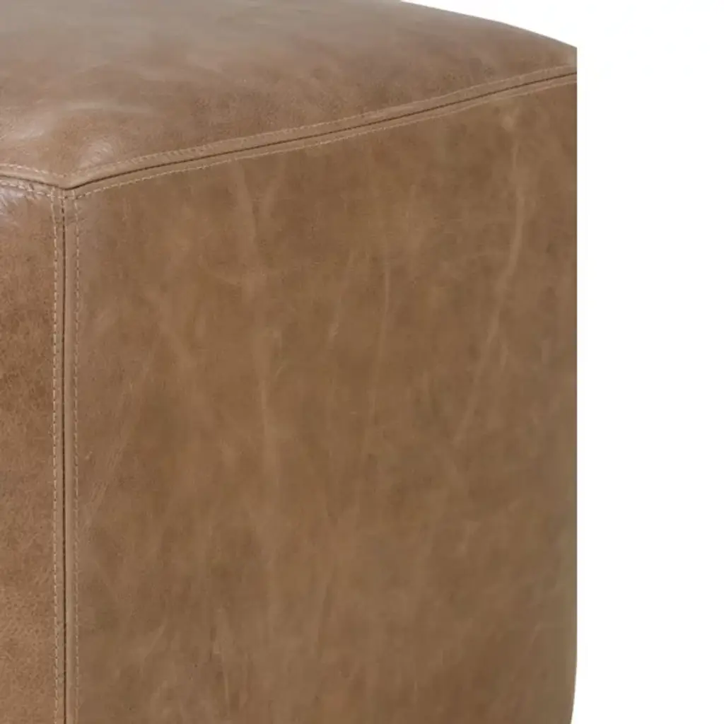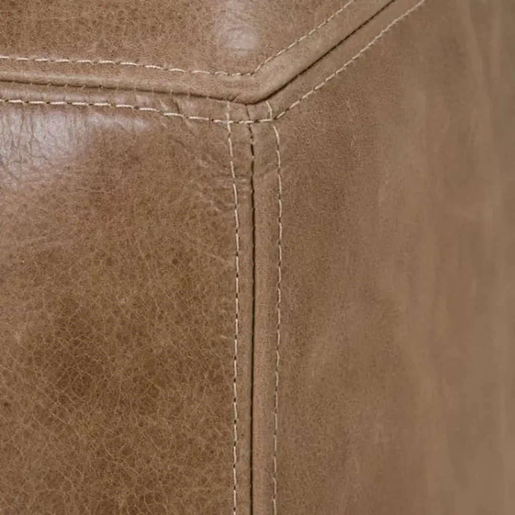 The Dena Leather Ottoman from Rowe Furniture puts premium leather's natural durability to practical use. The wood block base provides steady support, while the cube design maximizes functionality as both a seat and surface. Perfect as impromptu seating or with a decorative tray, this long-lasting piece requires minimal care - avoiding harsh cleaners preserves its natural patina. The tanning process permanently protects the leather, needing only basic maintenance to maintain its appeal.