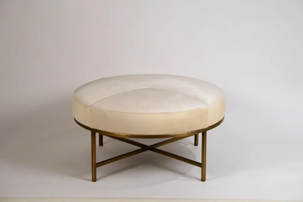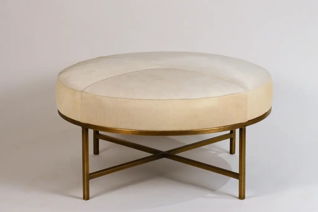 Design Frères White Hide And Patinated Brass "Tambour" Ottoman