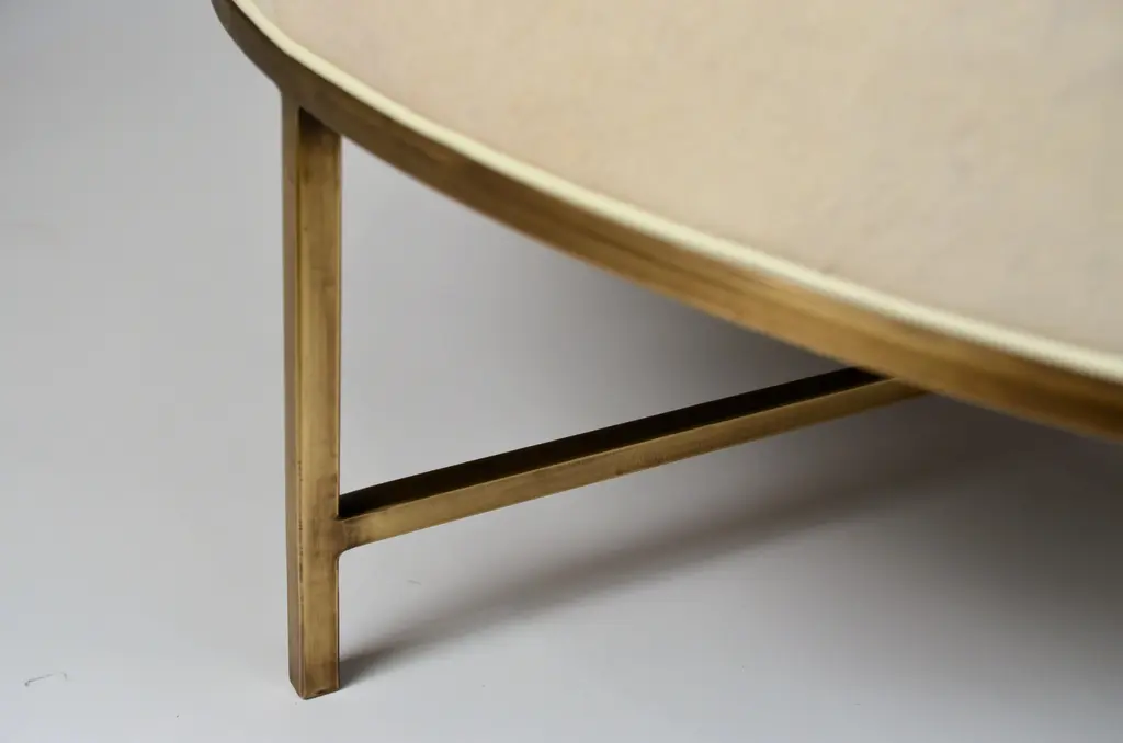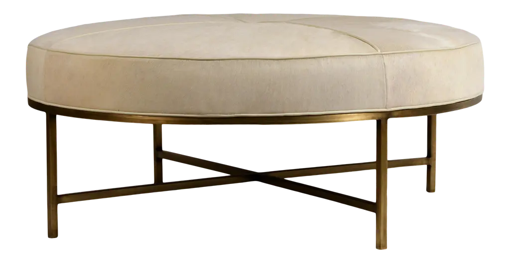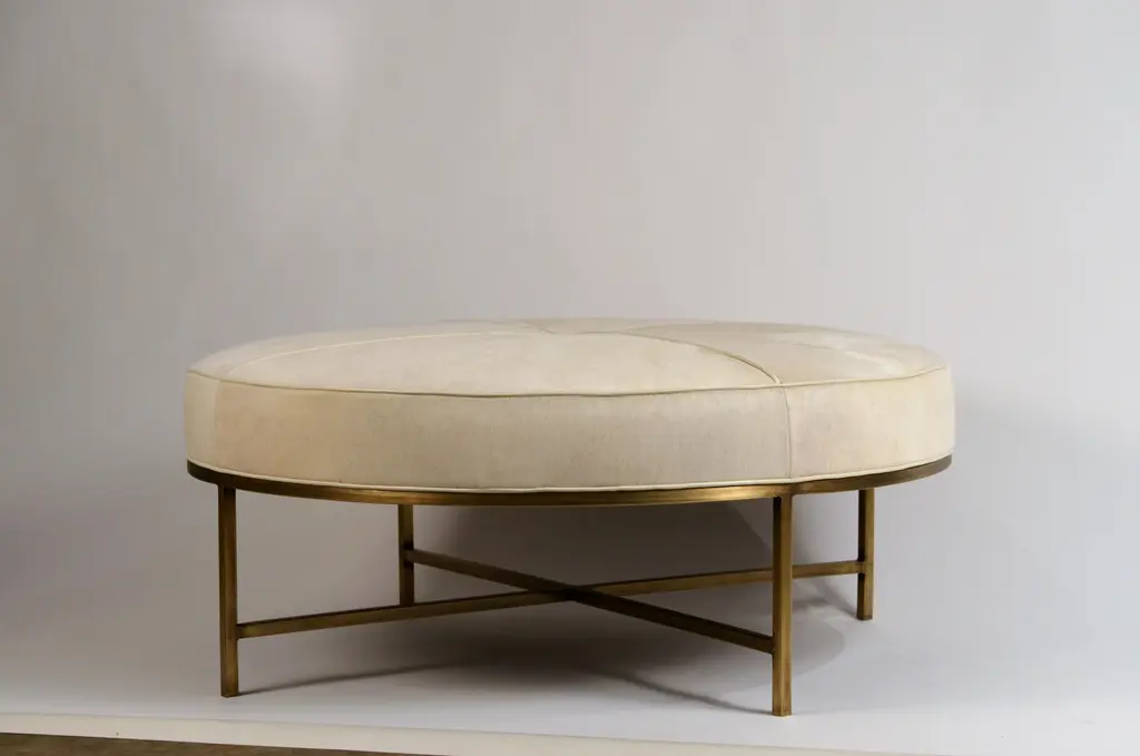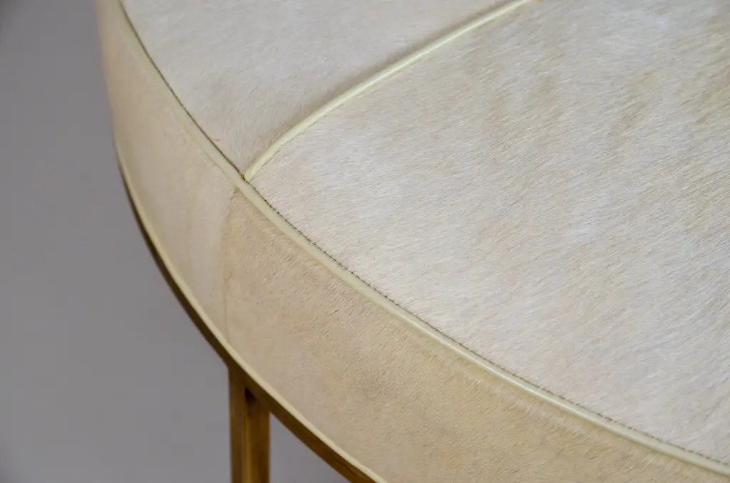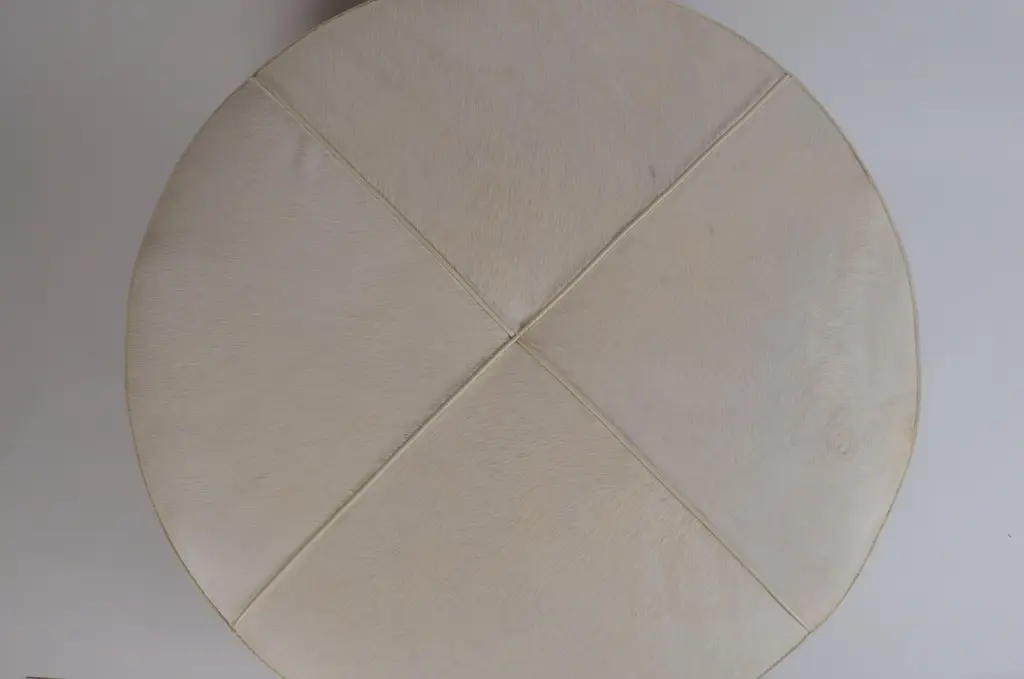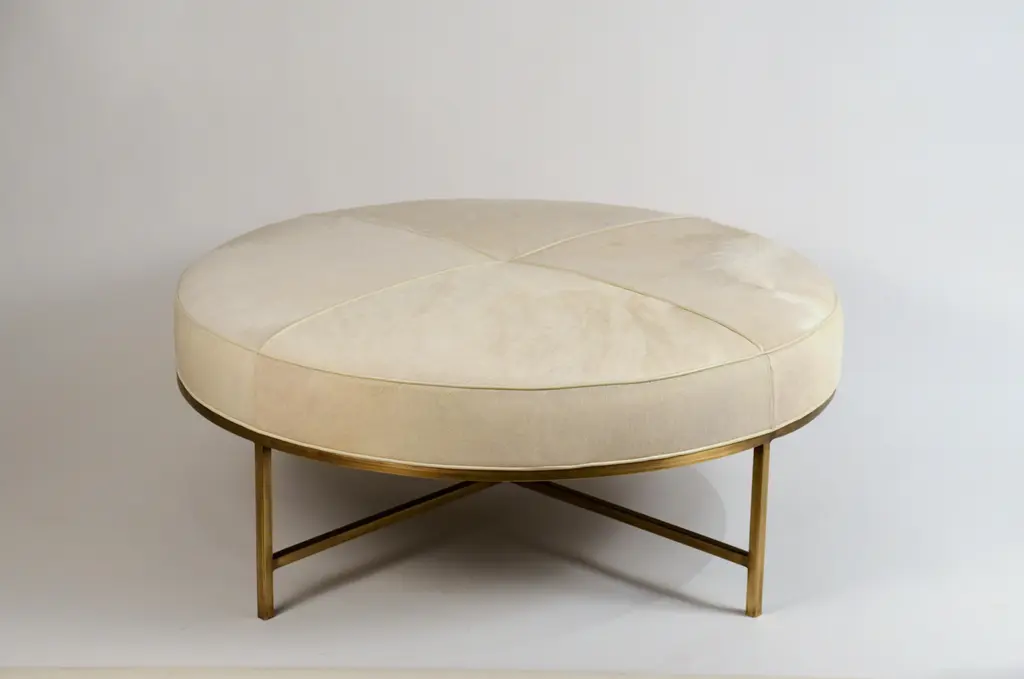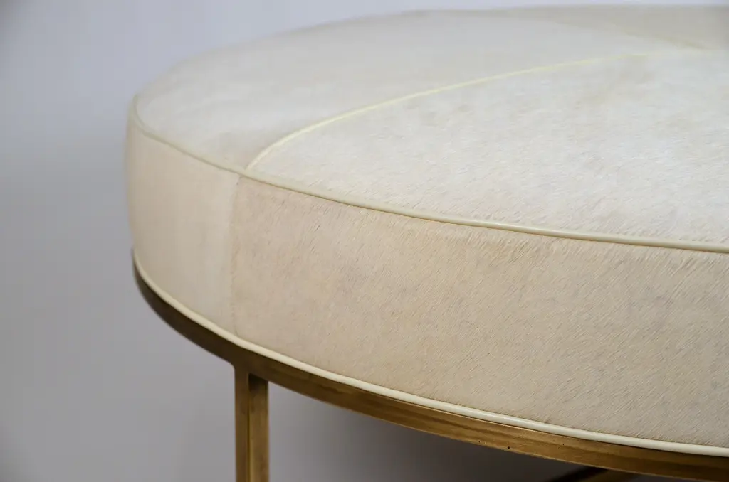 Design Frères White Hide And Patinated Brass "Tambour" Ottoman
