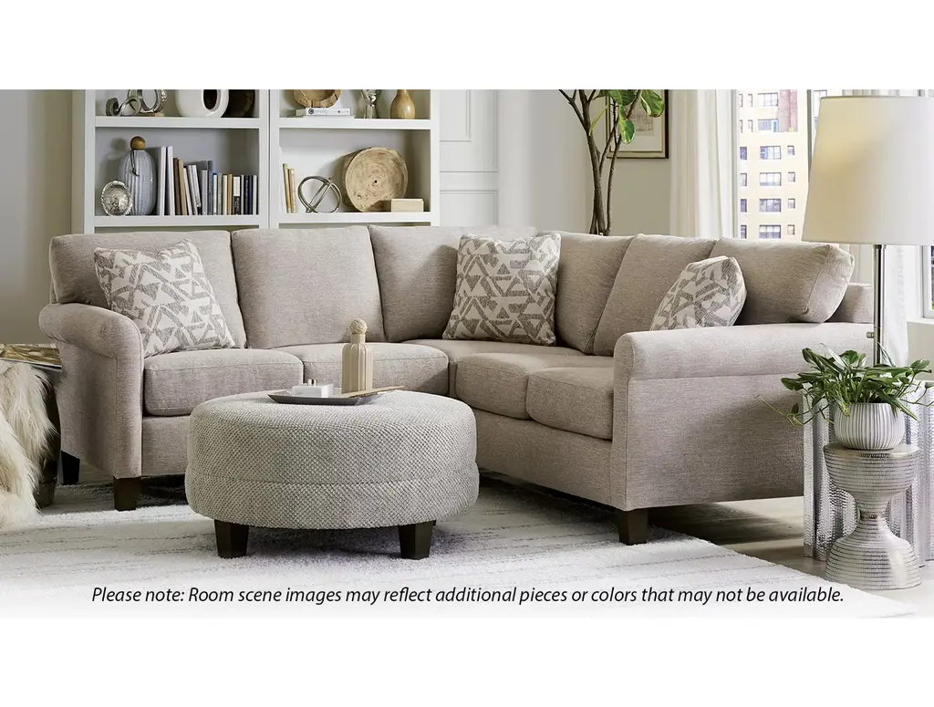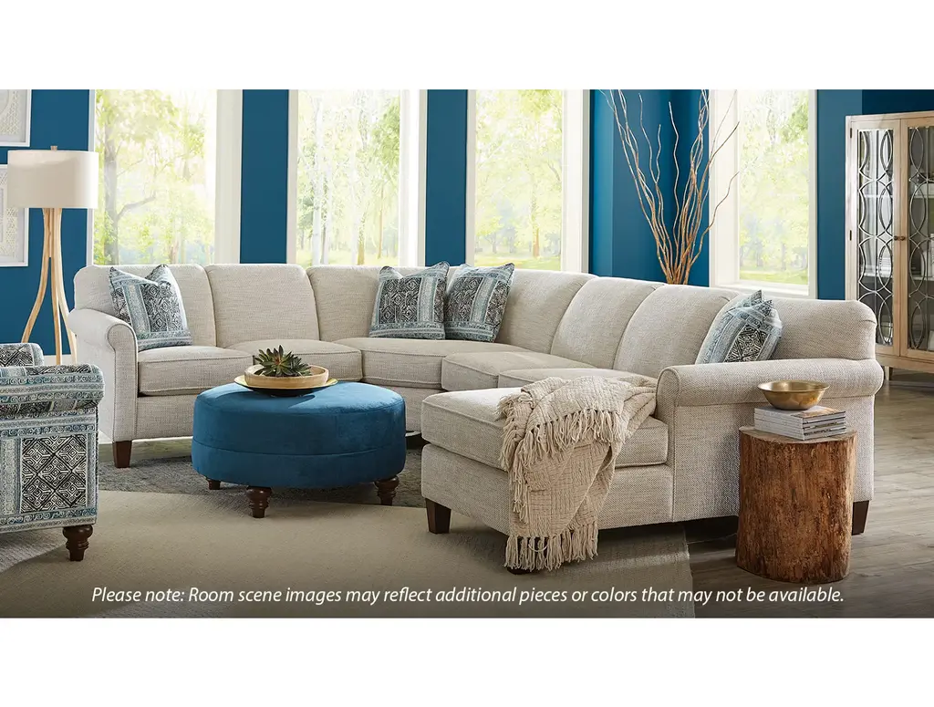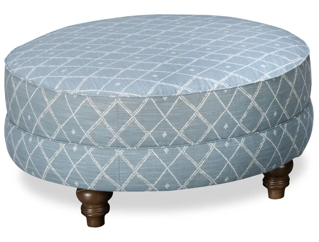 Complete your living room or family room with the Small Round Ottoman from Craftmaster Furniture. This traditional-style ottoman features a plush round top, turned wooden legs, and is fully upholstered with welt trim. Custom-order fabrics are available.