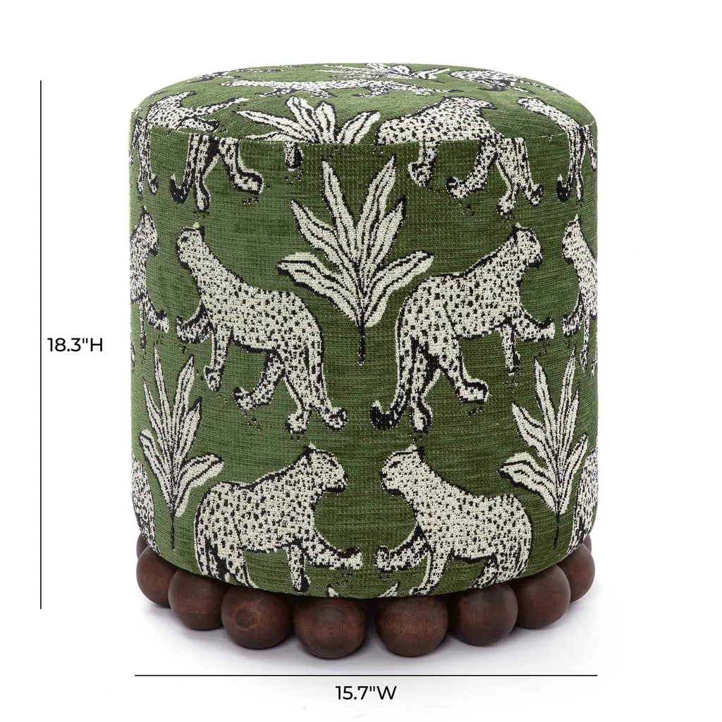 Introducing the Dex Ottomans, a charming and whimsical addition to your space that beautifully blends fresh design with a vibrant tropical vibe. The solid wood spherical orbs at the base create a striking visual element, ensuring a sturdy yet stylish foundation. Choose from playful washed linen-style cabana stripes, eco-friendly upcycled fabric, or bold leopard print jacquard to infuse personality into any room. Perfect for extra seating or as a chic footrest, these ottomans are available in a delightful palette of beige or pastel blue linen, faded blue or cream upcycled fabric, and taupe or olive green leopard prints. Transform your space with a touch of fun and flair!