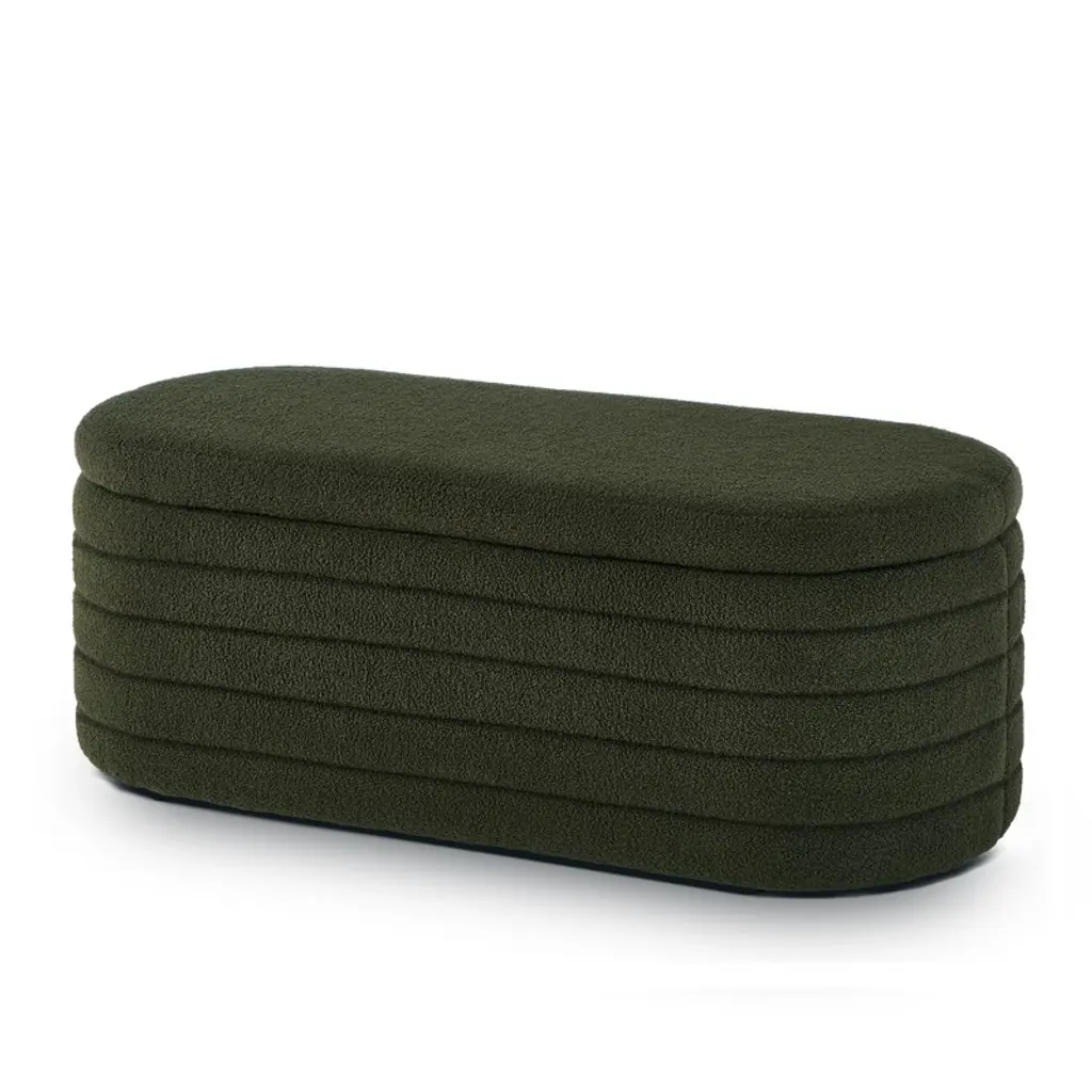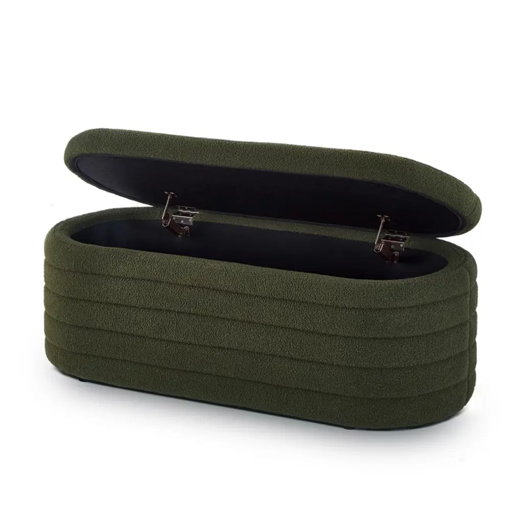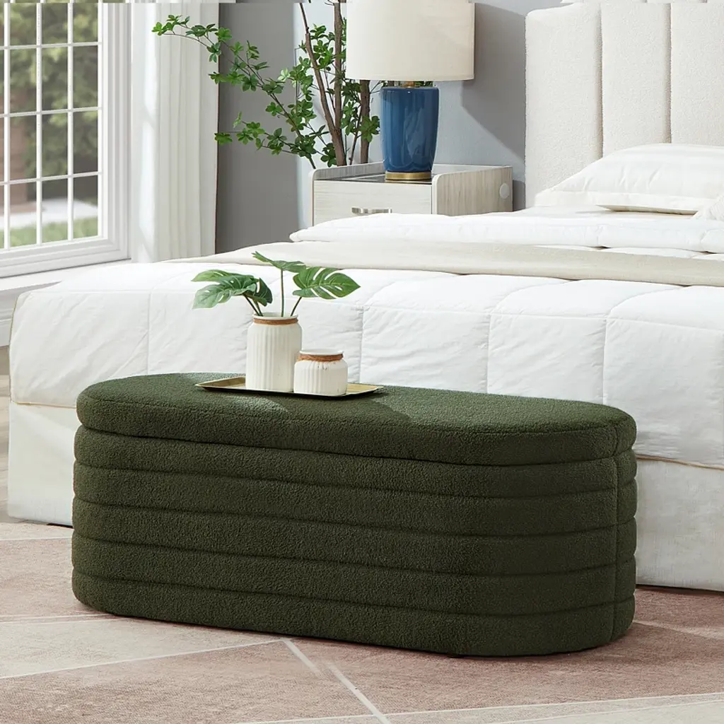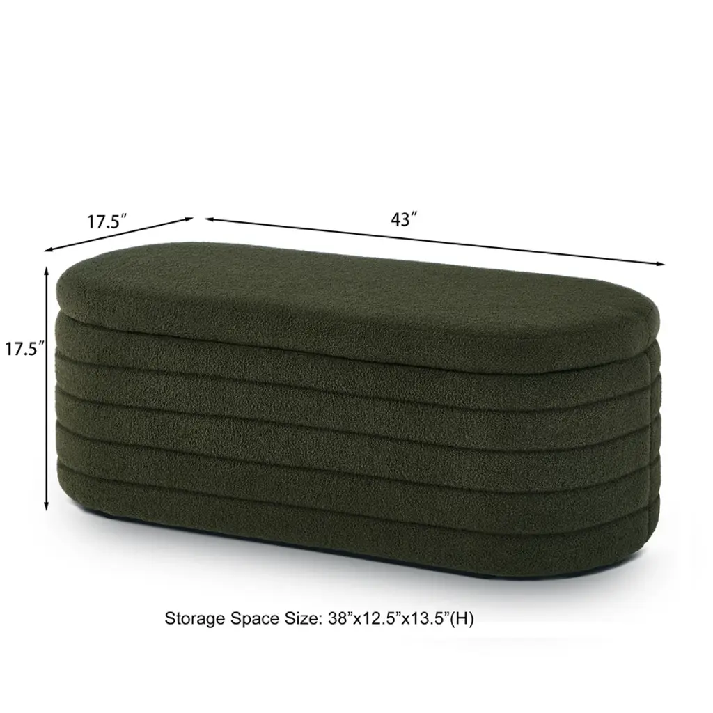This oval storage bench exudes elegance and practicality, featuring a teddy fabric that provides a soft and comfortable seating experience. The luxurious material not only adds a touch of refinement but also ensures a cozy and inviting feel for users.Crafted with a sturdy framework, this bench guarantees durability and reliability. The solid structure not only supports seated individuals but also ensures long-term resilience, making it a dependable addition to any living space.