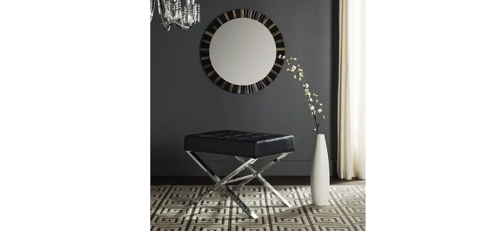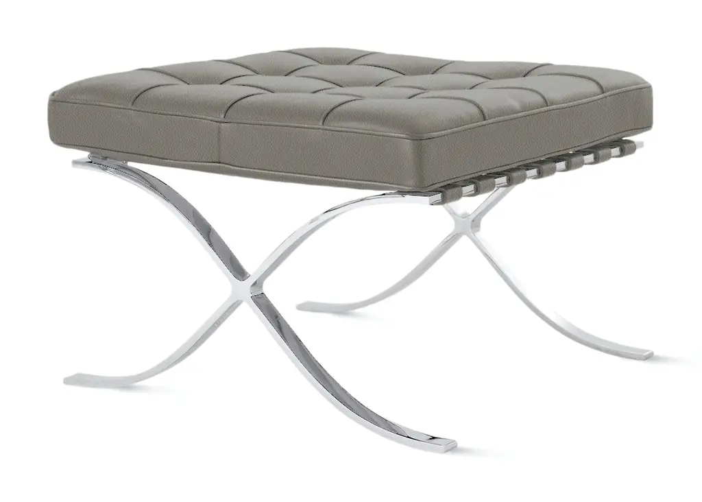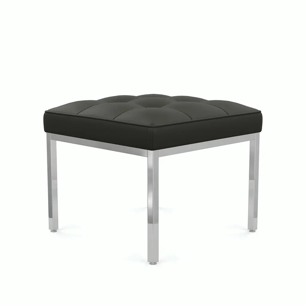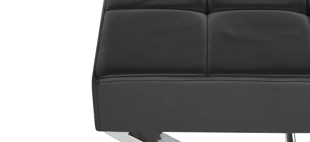 The modern minimalist beauty of this Diva Ottoman is a nod to the refined style of design legend Mies van de Rohe's Barcelona chair. The luxurious black PU leather upholstery and smooth chrome finish bring cosmopolitan style to any room.