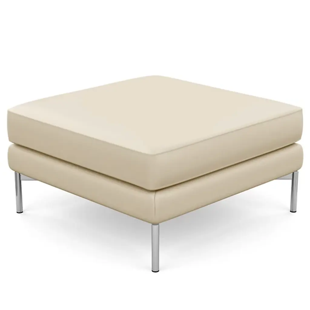 Clean lines and exceptional comfort characterize the Divina Ottoman designed by Piero Lissoni. Divina features a trim modern profile, with durable, yet thin legs supporting a chrome-plated steel frame. This refined European style is fitting for home or work spaces.