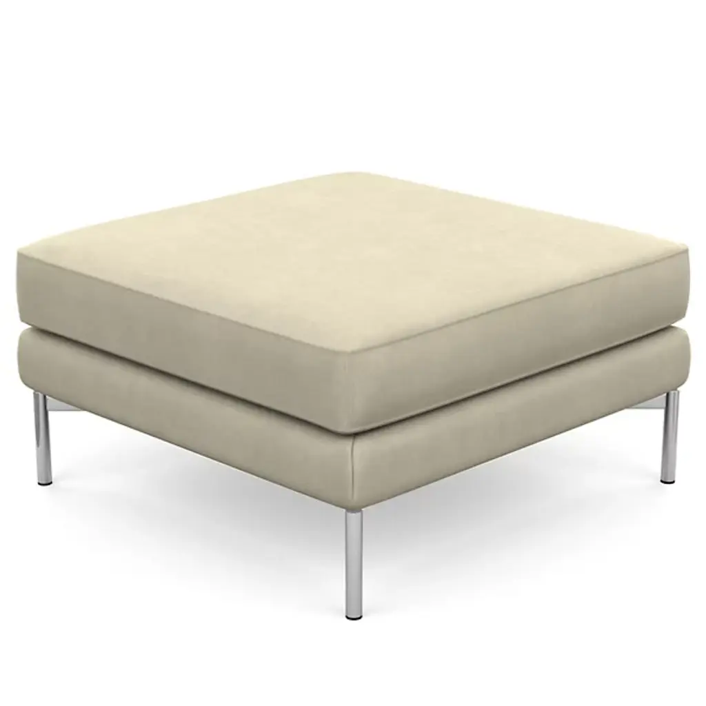 Clean lines and exceptional comfort characterize the Divina Ottoman designed by Piero Lissoni. Divina features a trim modern profile, with durable, yet thin legs supporting a chrome-plated steel frame. This refined European style is fitting for home or work spaces.