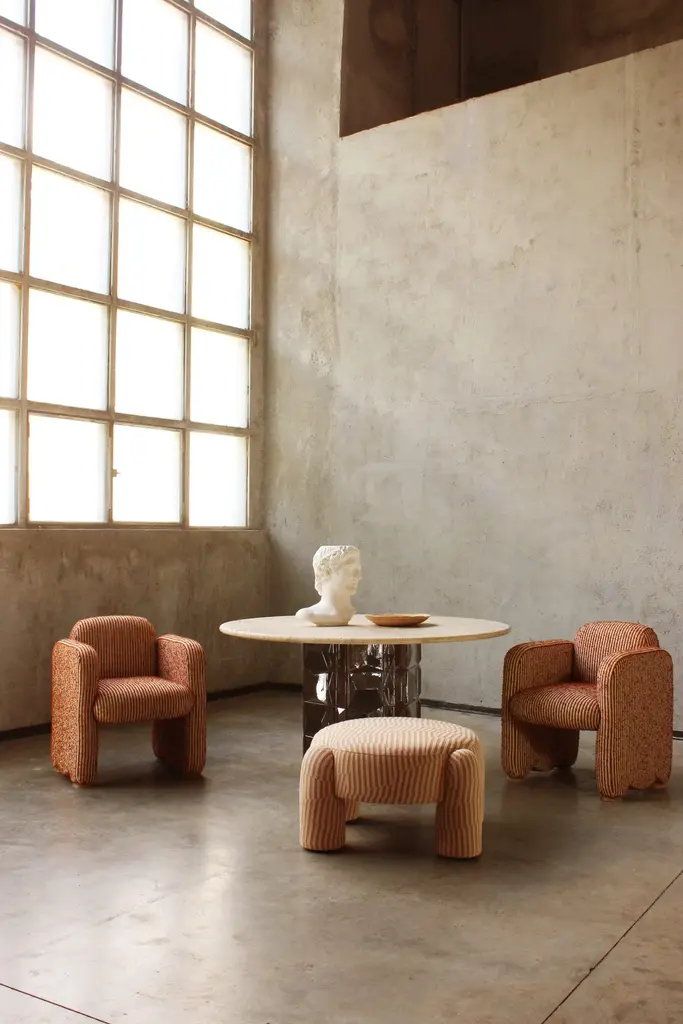 When pure geometry meets soft curves, something sculptural and sensual comes out. A fine dialogue between oversized legs and clean lines takes place in this piece upholstered in mohair velvet. Marlon is edgy and elegant at the same time, letting the dilemma between ‘contemporary’ versus ‘classical’ fall apart.Here it is presented in a Rich Kvadrat in Dusty Rose. Other colors available.Made to Order. Pietro Franceschini is an architect and designer based in New York and Florence. He applies a contemporary design vocabulary to a classical Italian sensibility. Irreverent and Emotionally impactful, Franceschini's furniture reflects his desire to combine playful energy within sophisticated, timeless elements. A resolutely twenty-first-century designer, he imbues his work with questions about reality, functionality and digital illusion.He was educated in Italy, Portugal and United States. After receiving his B.Arch cum laude from Università degli Studi di Firenze and his M.S.Arch with 1st class honour from Pratt Institute, he collaborated among others with Leeser Architecture in Brooklyn, Claudio Nardi in Florence, Laisné Roussel in Paris and Carlo Ratti Associati in New York. His latest project - PFStudio - was born in 2020 as an interior and furniture design practice.For sales with delivery address within European territories, VAT will be charged additionally to the stated price.