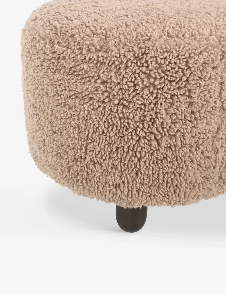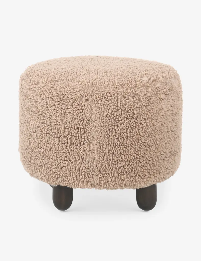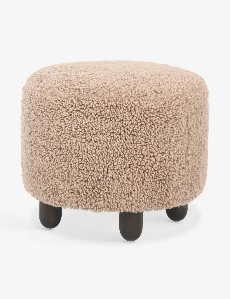 Comfort calls for texture, and with its lush faux shearling, the Dover ottoman offers the perfect touch. The plush cushion sits on four wood feet, lifting the profile from the ground for a lighter look and feel as it floats in the room. In a warm, neutral tone, this round ottoman offers a versatile accent to cozy up any space.