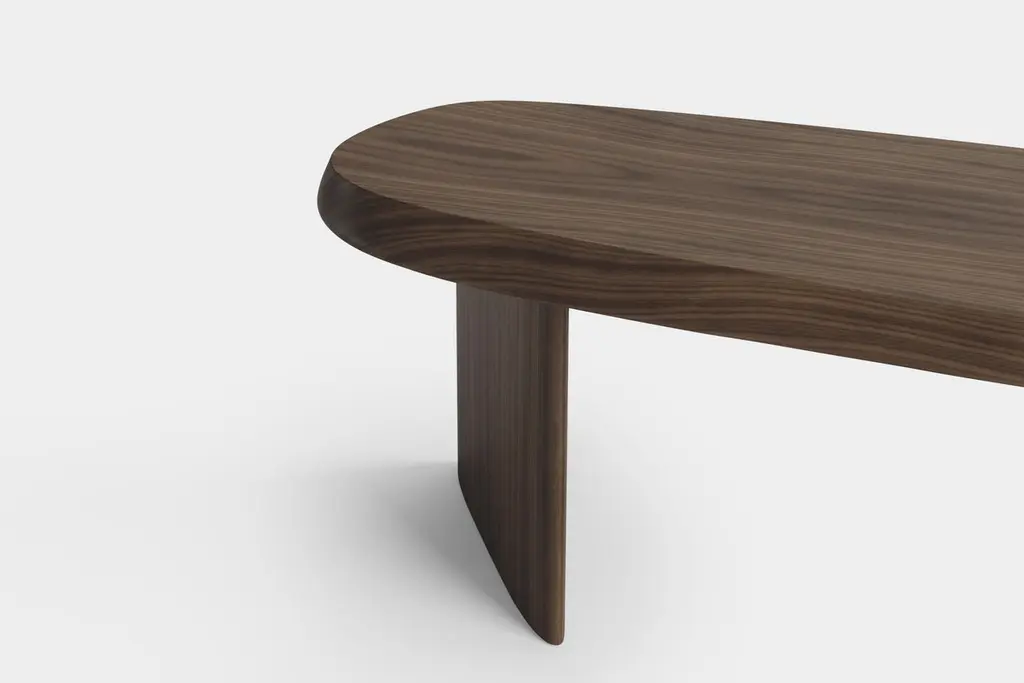 Duna Bench in Solid Walnut Wood, Ottoman by Joel EscalonaDuna Collection is a set of wood tables and surfaces inspired by the vast sand dune regions of the world. These formations, full of sinuous fine lines created by the wind, not only show the beauty of a landscape, but also represent the natural passage of time and the constant transformation of our surroundings. A beautiful and versatile piece to be used as a bench or as a sofa back or as the main decoration piece of your favorite space. This piece is delicately crafted to resemble a serene landscape through its carefully polished table top surface that resembles the effect of the wind and its captivating fluid smooth wood base. Designed by Joel Escalona and made of solid wood with a water-based finish, available in Poplar wood and Walnut. ——NONO is a Mexican design brand with more than 10 years of experience dedicated to the production of interior furnishings, editions, and custom-made projects. At NONO, we create pieces of extraordinary beauty, accommodating the particular needs and tastes of each client with exclusive high-quality designs.—Joel Escalona is a Mexican designer, difficult to define with a single word. His constant search for clarity, integrity and harmony led to his development as a designer with an obvious inclination towards visual arts, such as painting and sculpture. Joel’s work is characterized by thorough and elegant processes, sometimes creative, other times productive and on occasion, a bit introspective. In his work, it is possible to find glimpses of his charismatic and ironic personality, resorting to elements such as lyric, humor and poetry as attributes that are in constant connection throughout his body of work.————Some details to consider when placing an order with us:• Catalog images are digitally generated. Actual products may slightly vary in texture, grain, and final finish due to natural material differences. Despite these variations, our expertise ensures each piece maintains high quality and matches the intended design.• All of our products are made to order, and the lead time for standard products is estimated to be 9 to 12 weeks, plus shipping time. However, special pieces or sculptures may require a longer lead time.• We offer customization in dimensions and finish for all of our furniture pieces, which may result in additional charges.• We only facilitate freight services by a third party. The client is solely responsible for any associated import/export taxes, as well as any necessary customs paperwork.• We are not responsible for any damages that may occur during shipping or for any customs-related delays.