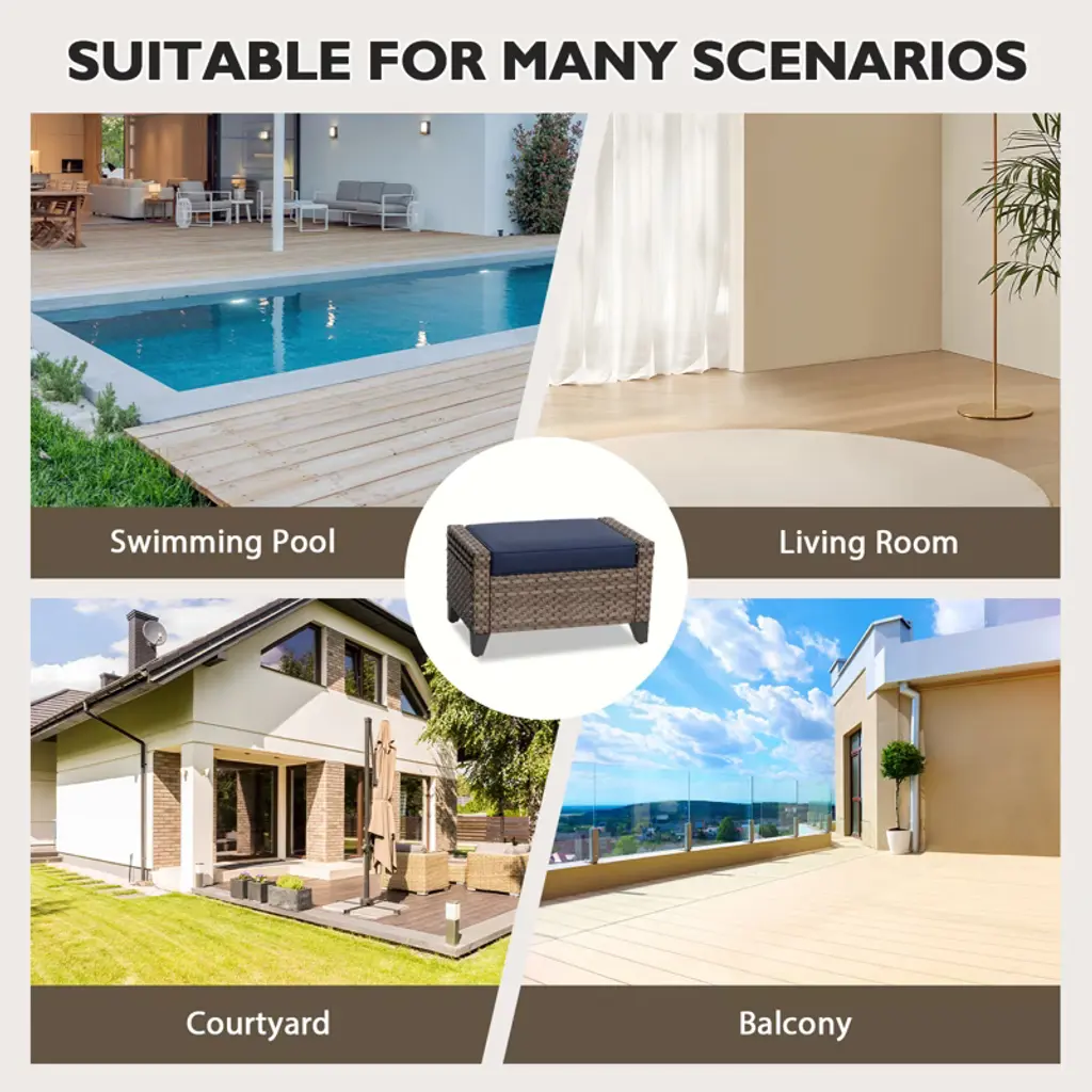 This outdoor rattan furniture set offers a variety of combination options, including outdoor chairs, swivel rockers, a three-seater double sofa, coffee tables and side tables. It is suitable for any space such as gardens, balconies, terraces, porches, pool sides, backyards, corridors or sunrooms, transforming your outdoor area into a stylish relaxation spot.