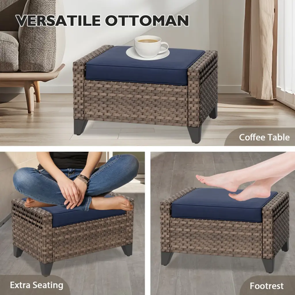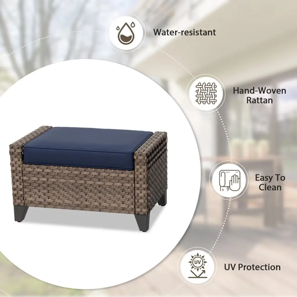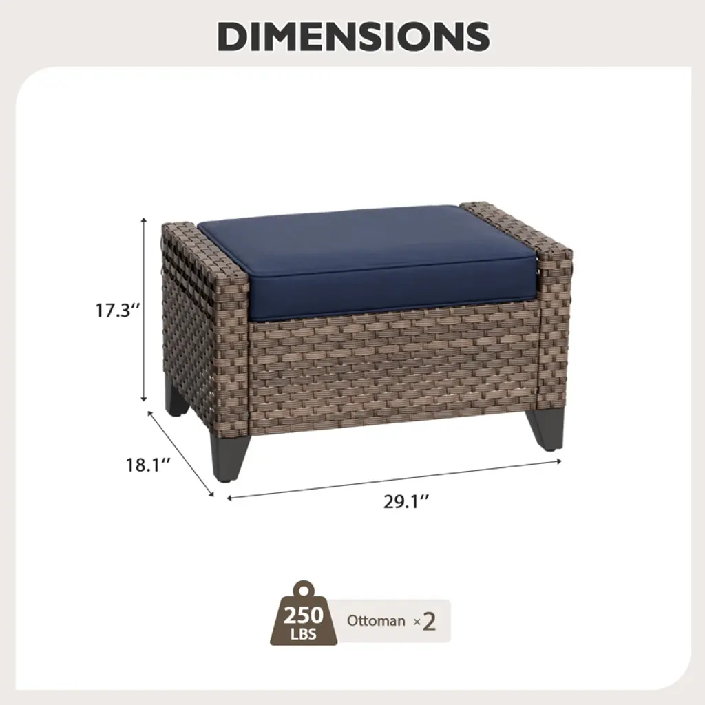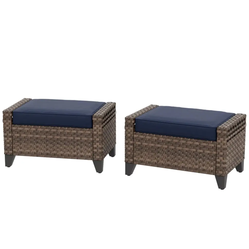 Eagle Peak 2 Piece Wicker Outdoor Ottoman, Patio Ottoman Foot Rest, Brown/gray