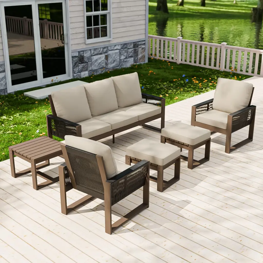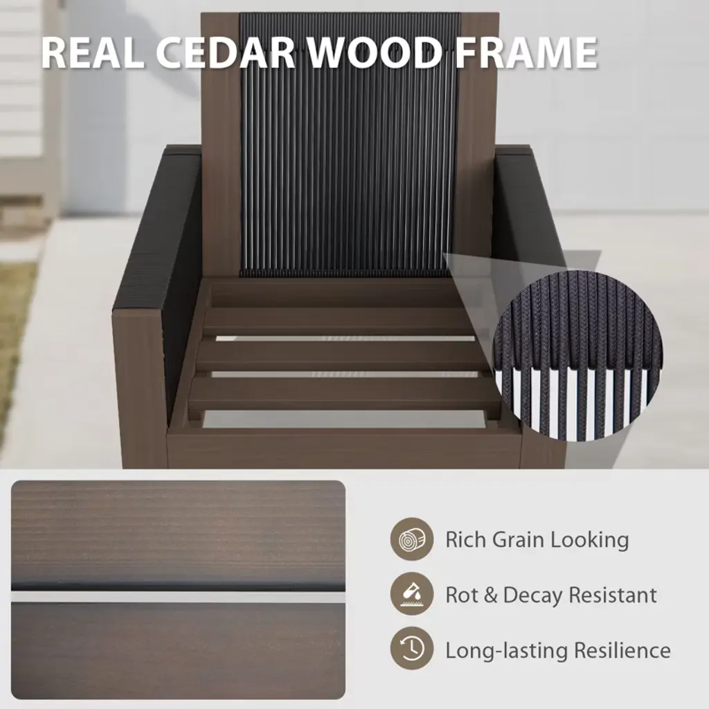 EAGLE PEAK outdoor real wood furniture set is crafted from high-quality cedar wood, known for its natural beauty and durability. Even with prolonged exposure to the elements, it remains in excellent condition. The set includes soft cushions made from high-quality olefin and high-resilience foam, ensuring comfort and breathability. After a busy day, sitting in this chair offers unmatched relaxation. In short, the EAGLE PEAK Outdoor Furniture Set combines beauty and functionality, enhancing your outdoor experience.