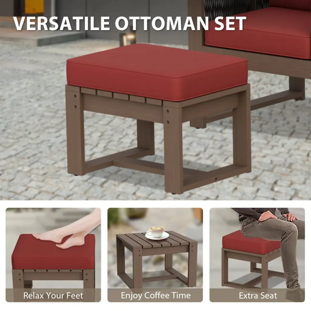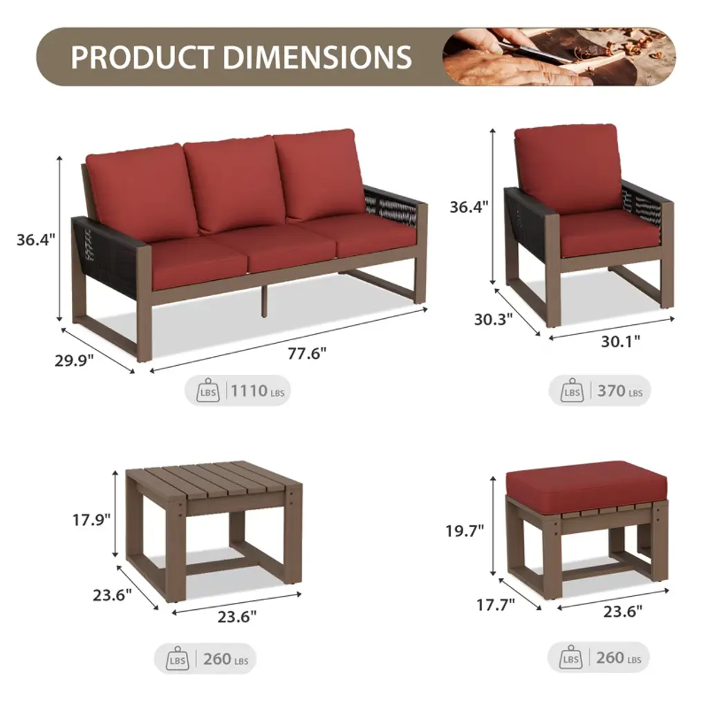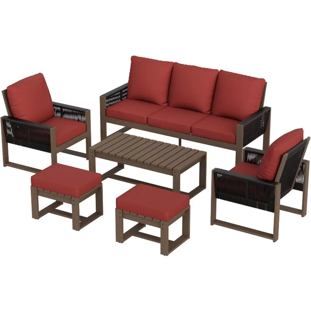 Eagle Peak 6 Pieces Natural Cedar Wood Conversation Set, Outdoor Patio Furniture With 2 Ottomans And Side Table, Red