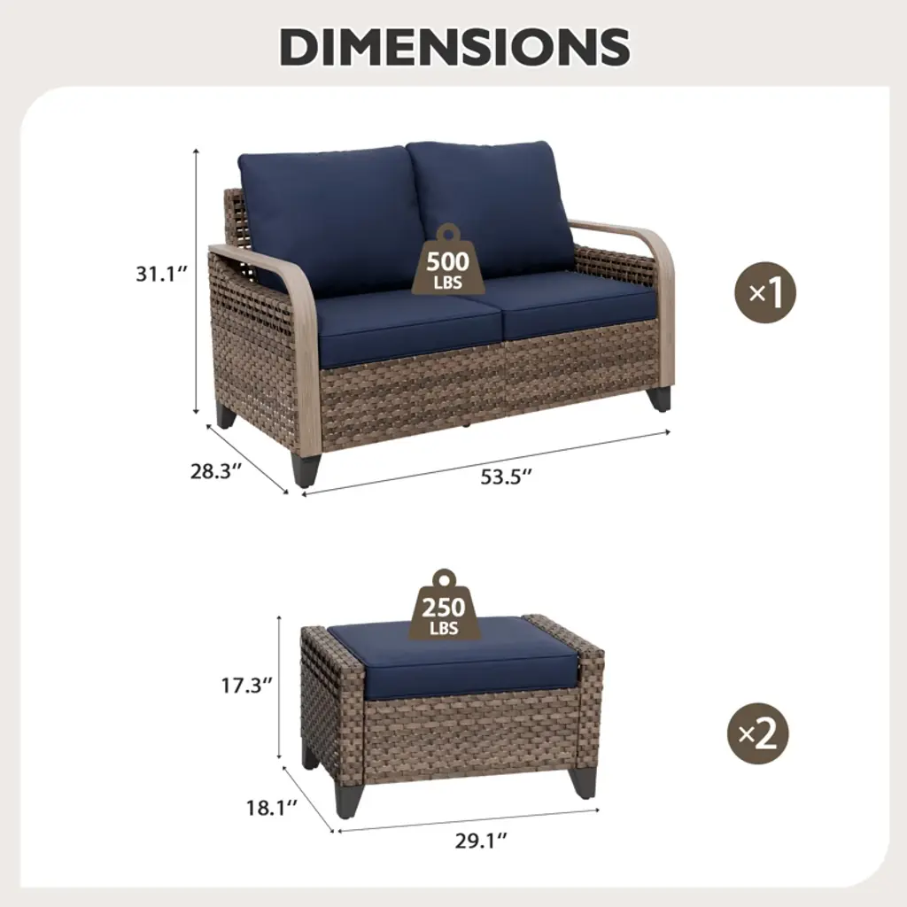 Eagle Peak Outdoor Rattan Furniture Set Patio Seating Set Patio Loveseat With Ottoman