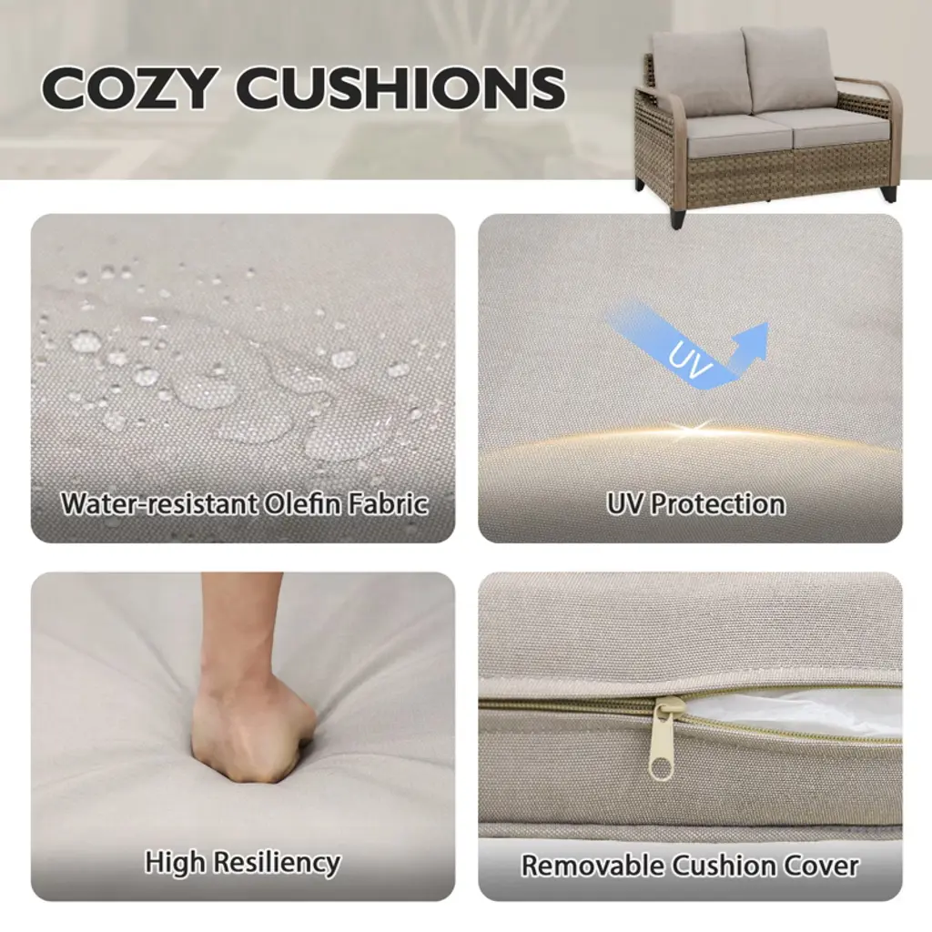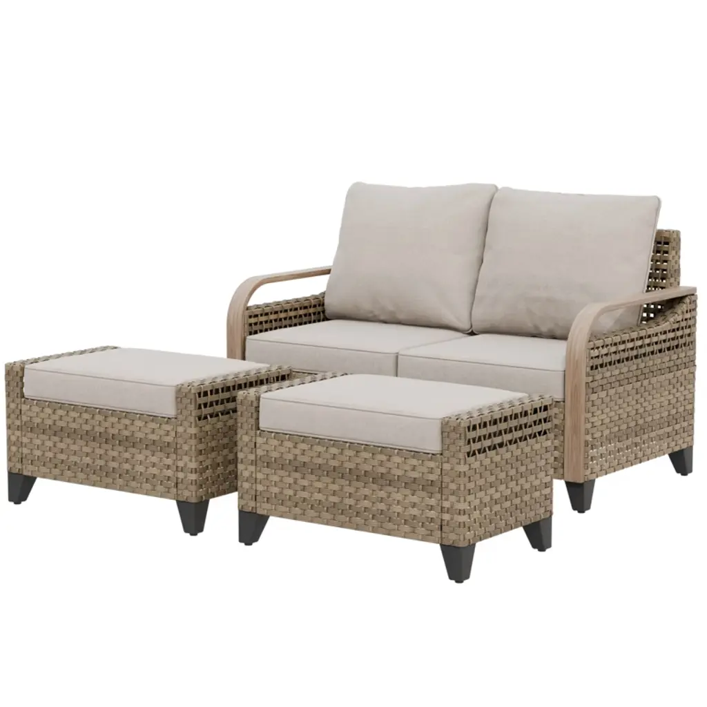 Eagle Peak Outdoor Rattan Furniture Set Patio Seating Set Patio Loveseat With Ottoman