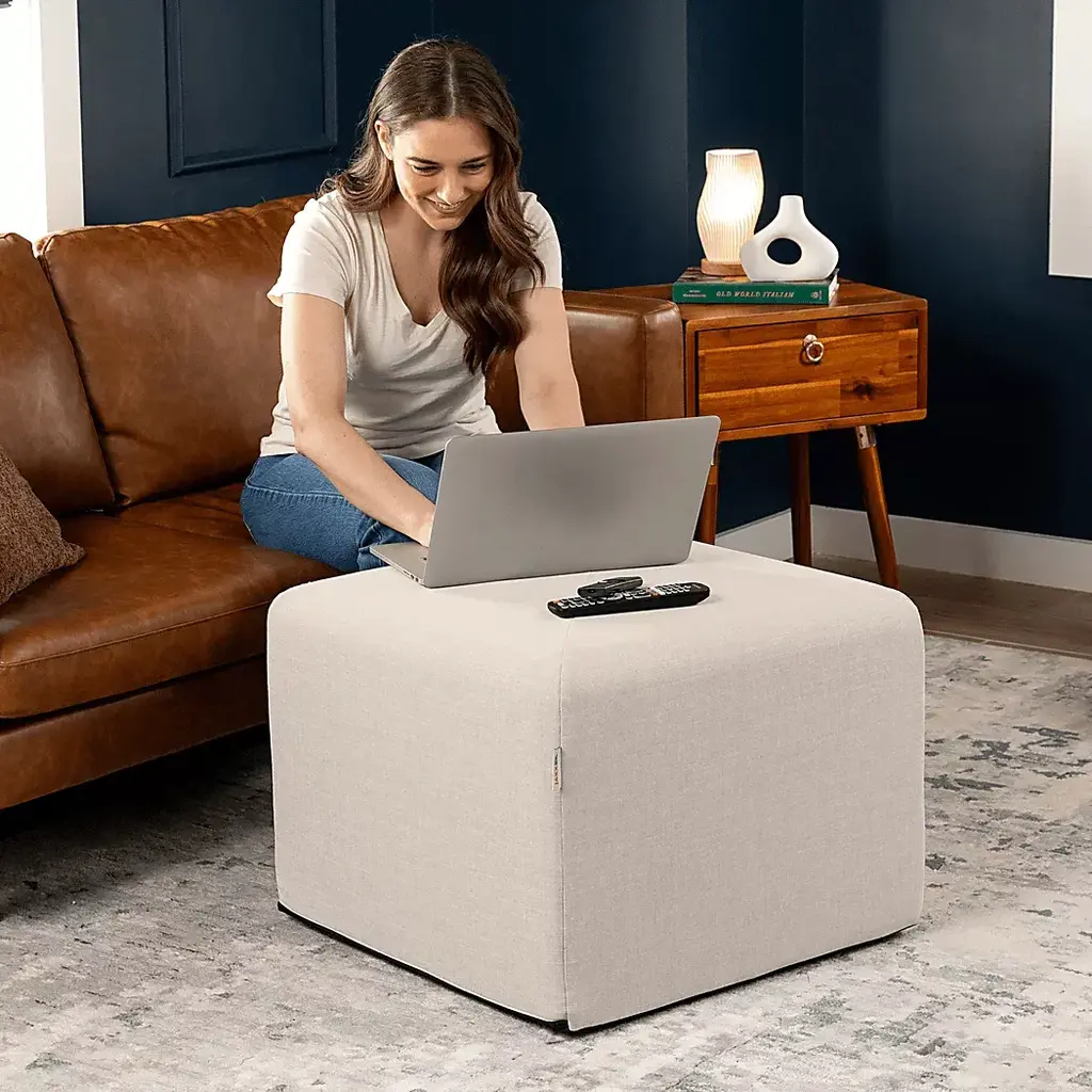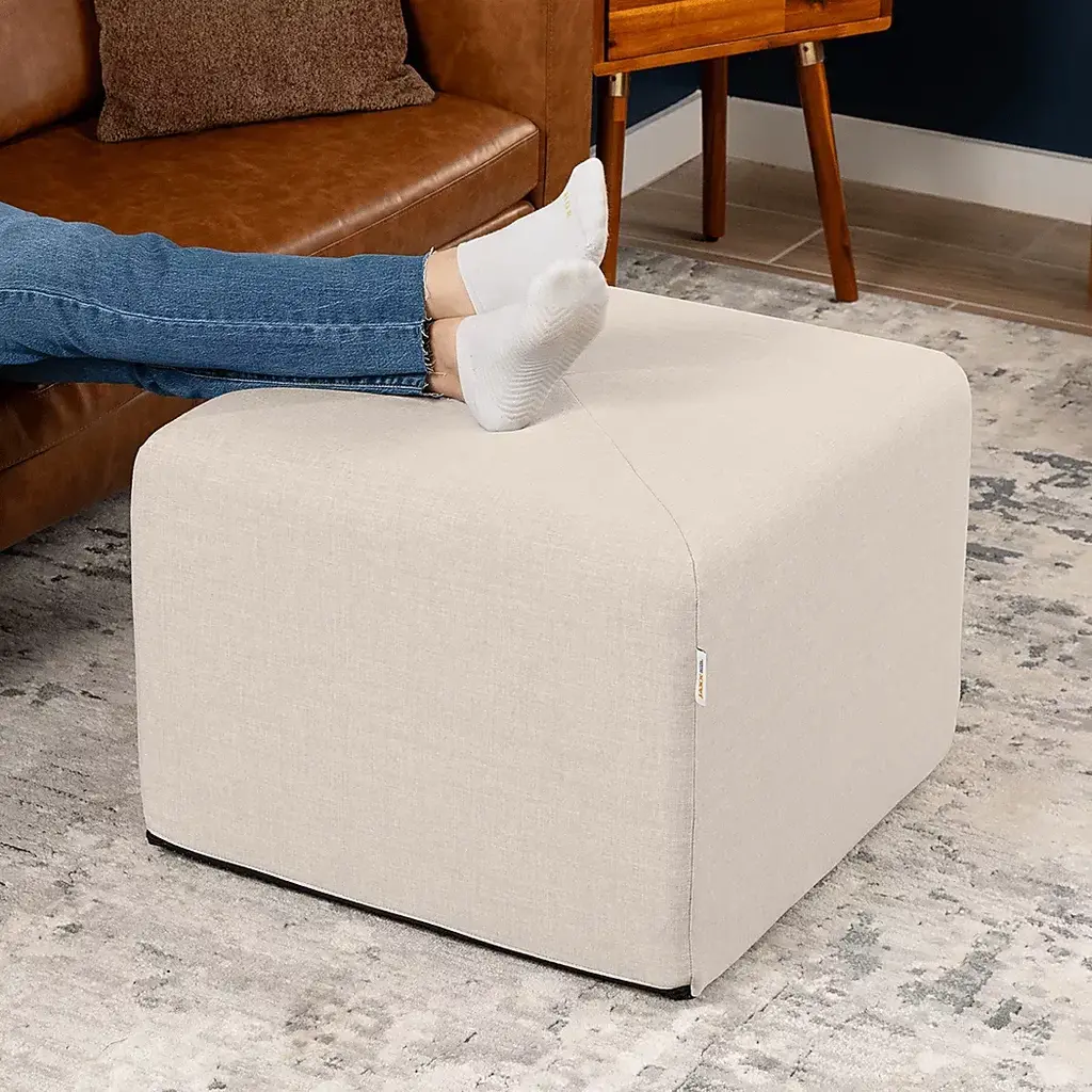 With its smooth round edges, supportive inner foam core, and modern silhouette, the Edunci Ottoman can be used for much-needed relaxation as a footrest, serving as an impromptu compact end table, or filling in as an extra seat. A multi-purpose essential, this ottoman pairs perfectly with most living room furniture because of its 18-inch height. It features a durable, removable, machine-washable cover that can repel stains and spills. A lush addition to your decor - place a tray on top, and it works as an end table just as easily as a compact, portable seating option or footrest.