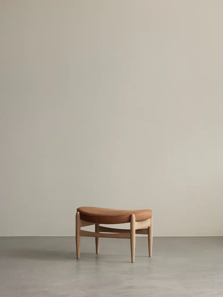Originally dubbed the U-56, the Elizabeth Ottoman by Ib Kofod Larsen is a classical and comfortable accent piece for use when reclining in the corresponding Elizabeth Chair, which takes its name from Queen Elizabeth II, who purchased the design during a visit to Copenhagen in 1962.
