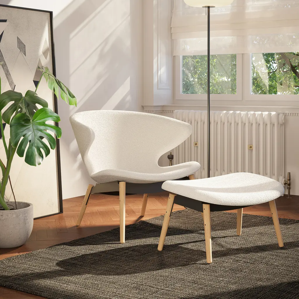 Put your feet up in style with the Ella Ottoman, designed to perfectly complement the Ella Lounge Chair. With its curved silhouette and warm wooden legs, this ottoman adds a cozy yet refined touch to any space. Upholstered in plush boucle fabric, it’s as comfortable as it is good-looking—making it the perfect spot to kick back and relax after a long day. Whether paired with the lounge chair or used on its own, the Ella Ottoman brings both comfort and character to your home.