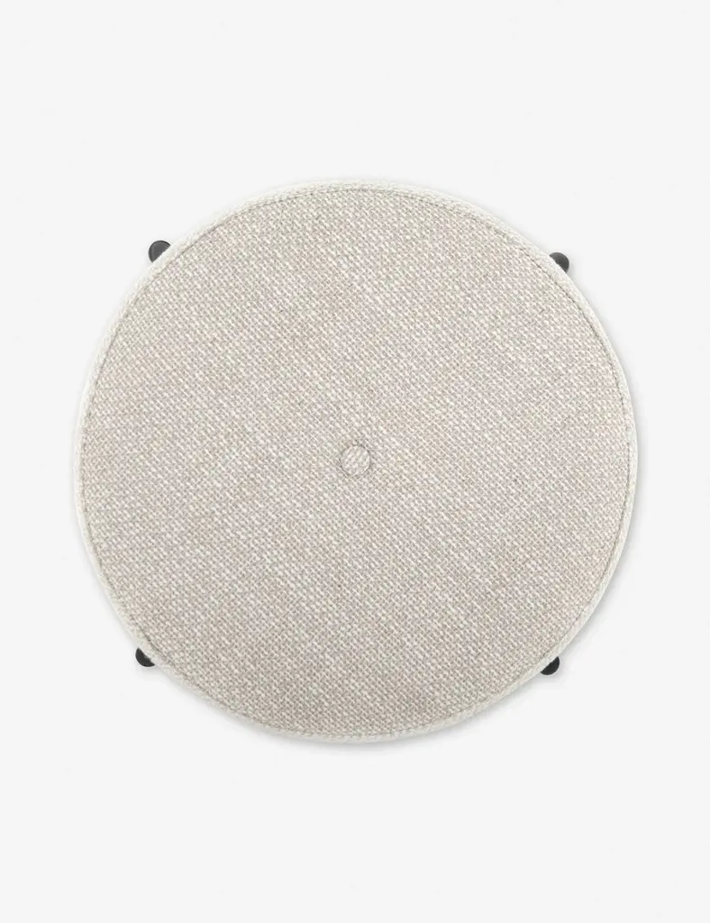 There is a stylish versatility to this round ottoman, with its plush, wheat-colored performance fabric creating additional seating or an extra surface when partnered with a tray. A rounded beech wood top floats above an airy, yet sturdy gunmetal-finished iron base to create an eye-catching mixed material look in your living room.