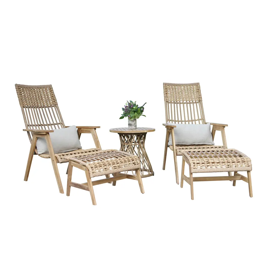 Encinitas Teak And All Weather Outdoor Ottoman 2 Piece Set