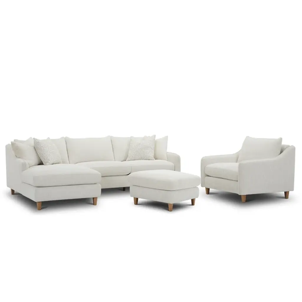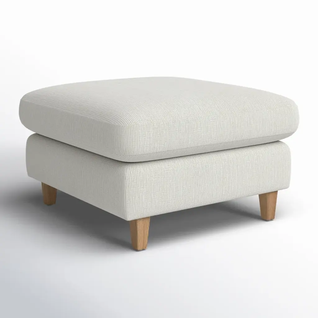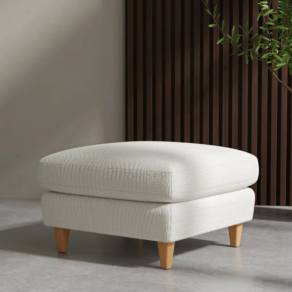 Introducing the perfect ottoman for smaller spaces - our compact and stylish design. The wood feet in a natural finish add a distinctive touch and lend a modern vibe to any room in your home. Exquisitely tailored and upholstered in a durable, 100-percent polyester fabric with rich texture and velvety softness, this ottoman is built to last. The cushion is padded with high-density Dacron and topped with sterilized down and feathers for maximum plushness, while the cushion features high-density webbing for long-lasting support. Select woods are kiln-dried to minimize warping and splitting while ensuring longevity.