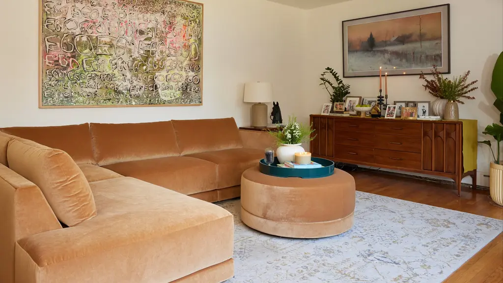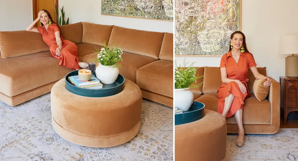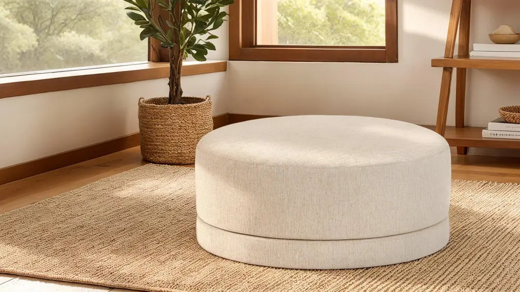 DESIGN Arrange, rearrange, and repeat. Eva's modular pieces are designed to fit together to create the perfect configuration for any space. Sculptural and cozy proportions effortlessly strike the balance between formal and lounge-y. Break it off with boxy with Eva's round ottoman. Well-paired to stand alongside the curved silhouette of the rest of the Eva Collection, yet stylish enough to stand alone. Recessed legs make Eva appear to float and accentuate the fluid lines of its thin frame. Handcrafted in the USA. FEATURES Solid Foundation: Our frames are constructed from precision-cut, FSC-certified engineered wood for unmatched strength and stability, featuring reinforced, interlocking joinery for added durability. Crafted for Coziness & Durability: Foam & fiber cushions offer our most supportive yet comfortable sit with a sleek, tailored look that requires minimal fluffing. These cushions feature high-quality, high-resiliency CertiPUR-US® foam core seats wrapped in premium fiber. CertiPur-US® foam is held to the highest standards of product safety and durability, so you can rest easy. Supportive Webbing Suspension: Designed to maximize comfort, our premium webbing system provides a resilient foundation. Customizable Upholstery: Choose from a vast selection of durable premium and performance fabrics and genuine Italian leather to personalize your Eva Ottoman's look.