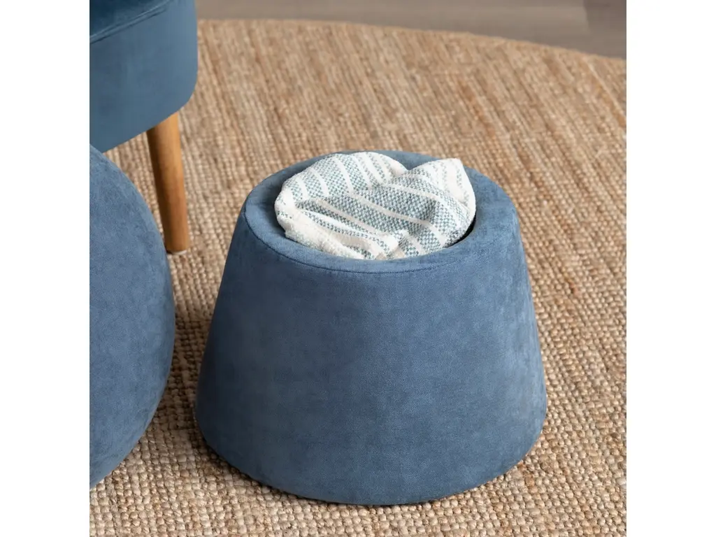 Add a bold and functional accent to your space with this Navy Chenille Ottoman. Designed in a modern mushroom-inspired shape, this versatile piece serves as both a stylish accent and a hidden storage solution. Upholstered in soft chenille, it brings a cozy yet sophisticated touch to any room. The removable top lifts off to reveal a handy compartment for storing small essentials. With dimensions of 17.5 inches in width, 17.5 inches in length, and 15.25 inches in height, it's compact and practical. Internal storage measures 8.25 inches wide and 10 inches high.