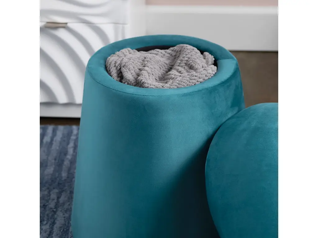 Elevate your living space with this Teal Velvet Ottoman, a perfect blend of style and function. Designed in a modern mushroom-inspired shape, this upholstered piece doubles as a stylish accent and hidden storage. Wrapped in luxurious hot pink velvet, it adds a vibrant touch to any room. The removable top reveals a compartment ideal for keeping essentials out of sight. Measuring 17.5 inches in width and length, with a height of 20 inches, and internal dimensions of 8.25 inches wide and 14.5 inches high, it's both chic and practical.