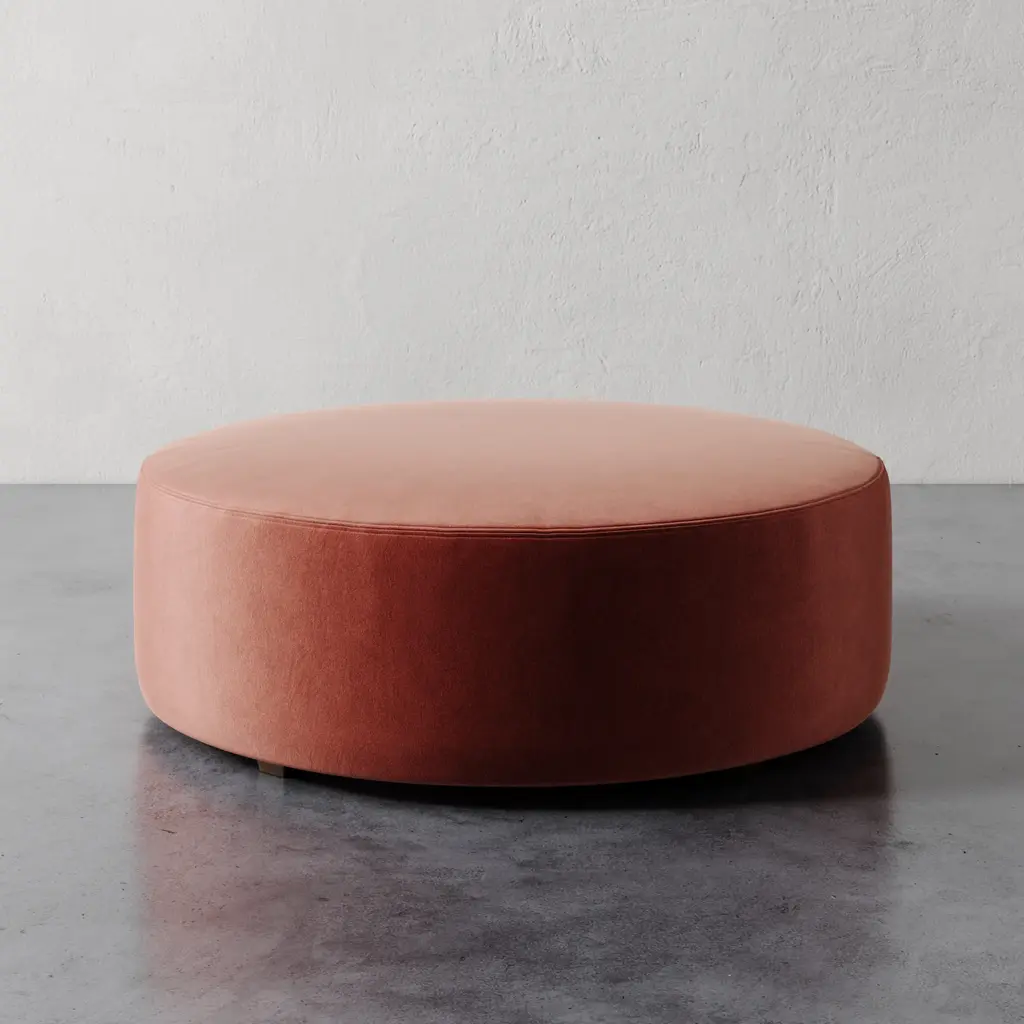 The Fabien 48" Round Ottoman expands on the clean, versatile design of the original with a more generous scale—perfect for use as a coffee table ottoman or extra seating. Its minimalist form allows it to seamlessly blend into a variety of interiors, while the larger surface offers space for trays, books, or relaxed lounging. Fully customizable in a wide range of fabrics, including COM, the Fabien becomes a canvas for bold pattern or refined texture, serving as the visual anchor—or jewelry—of the room. Thoughtfully scaled and endlessly adaptable.