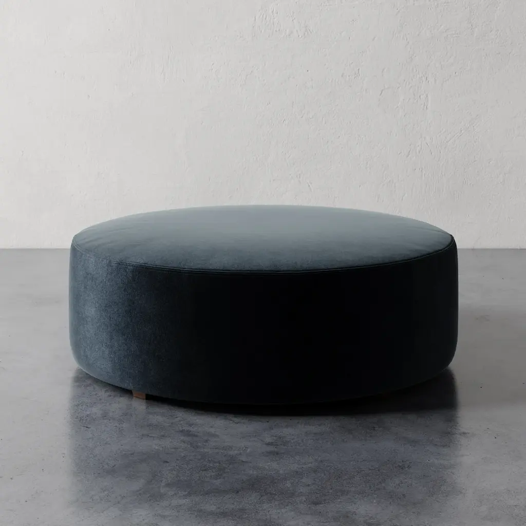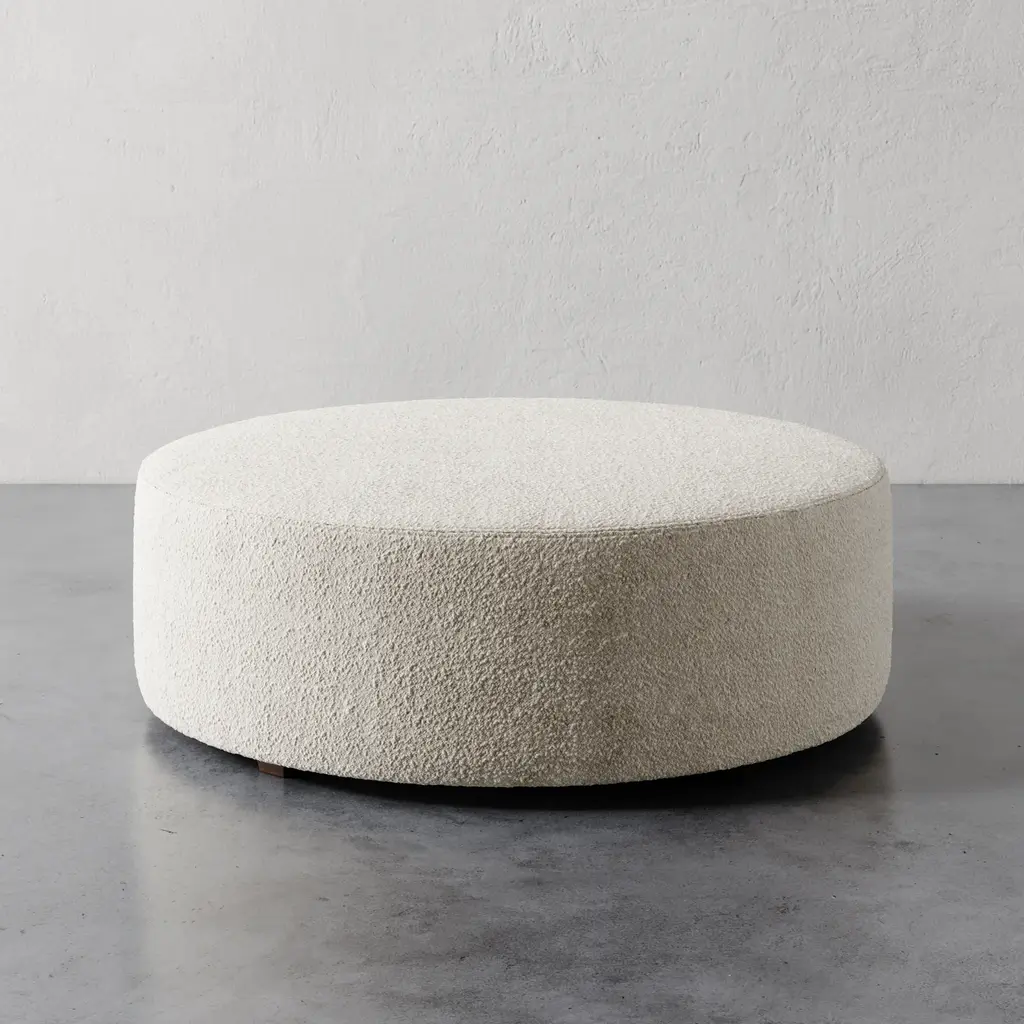 The Fabien 48" Round Ottoman expands on the clean, versatile design of the original with a more generous scale—perfect for use as a coffee table ottoman or extra seating. Its minimalist form allows it to seamlessly blend into a variety of interiors, while the larger surface offers space for trays, books, or relaxed lounging. Fully customizable in a wide range of fabrics, including COM, the Fabien becomes a canvas for bold pattern or refined texture, serving as the visual anchor—or jewelry—of the room. Thoughtfully scaled and endlessly adaptable.